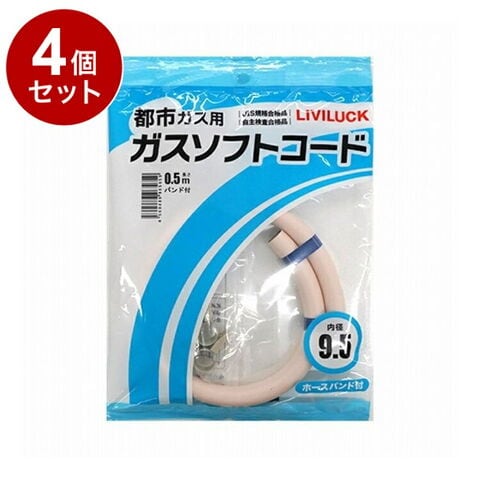 【単品 4個 セット】 都市ガス用ソフトガスコード Φ9.5×0.5m 株式会社リビラック GH-T9.5-0.5【ポイント10倍】 【送料無料】