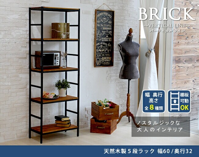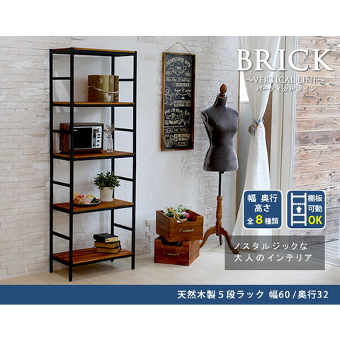 ブリックラックシリーズ5段タイプ 60×32×175 簡単組立 5段 アンティーク モダン ナチュラル オイル ミッドセンチュリー【送料無料】