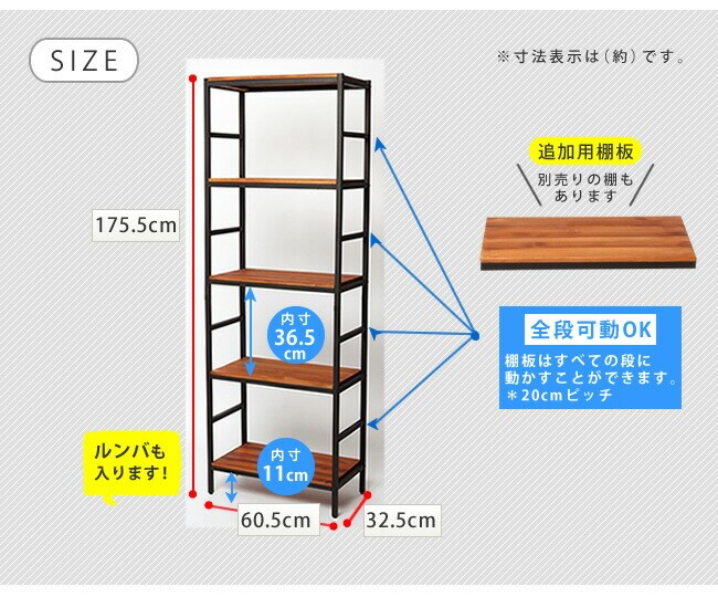 | 高さ175cmラック (5段タイプ) | 奥行32cm | PRU-6032175 | |