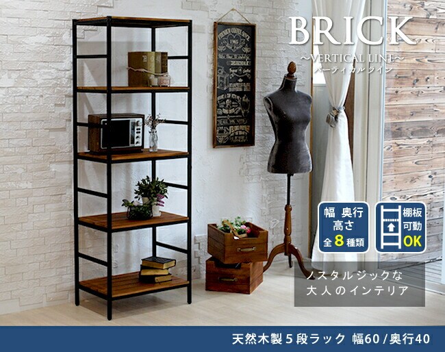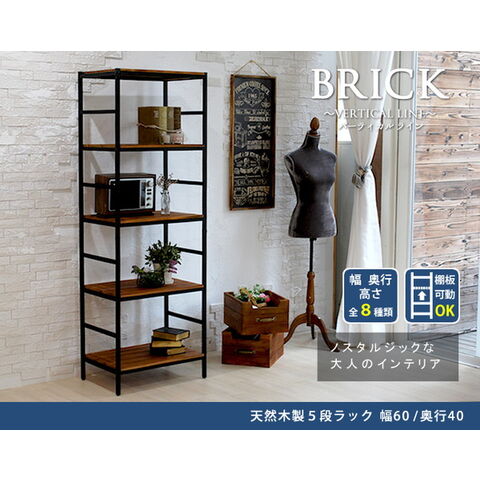 ブリックラックシリーズ5段タイプ 60×40×175 簡単組立 5段 アンティーク モダン ナチュラル オイル ミッドセンチュリー【送料無料】