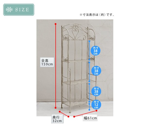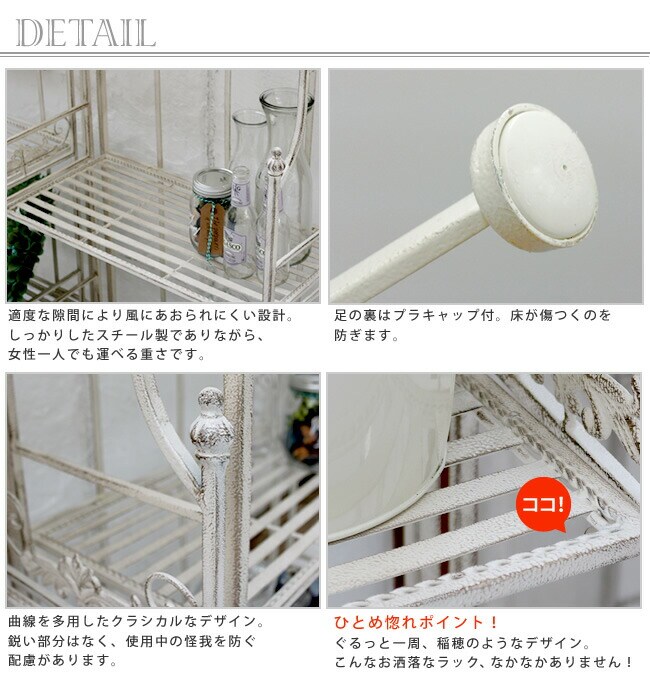 | ■商品名 | ブランティーク ホワイトアイアンラック 4段 |