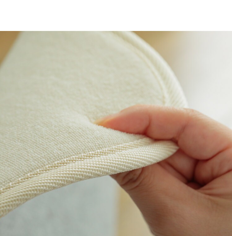 タオルケットに使われるポリエステル100%の手触りのよいタオル生地を使用し、繊維の摩擦力でずれを防止。