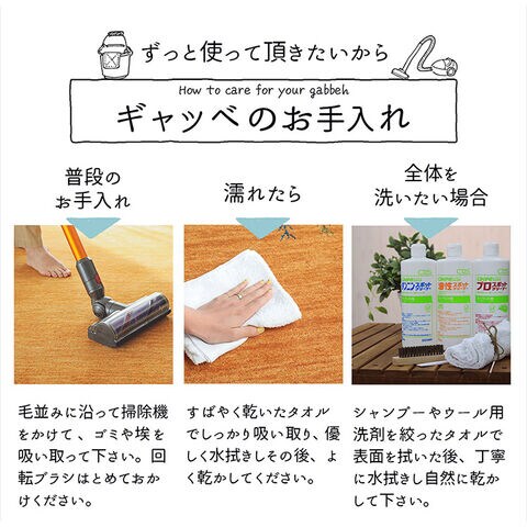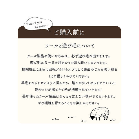 ※ウール製品のため遊び毛がでます。掃除機をお使いの場合は回転ブラシをオフして優しく吸い込んでください。