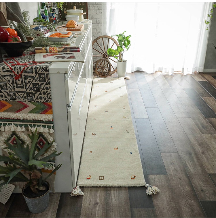 ギャベ ギャッベ キッチンマット 45×240cm インド製 手織りギャッベ ウール100% 防炎ラベル付き おしゃれ ラグ ラグマット カーペット【送料無料】
