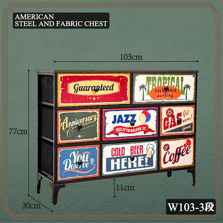アメリカン チェスト 幅103cm 3段 アンティーク風 ヴィンテージ 棚 収納 収納ボックス アメリカンヴィンテージ ミッドセンチュリーモダン レトロ ブルックリンスタイル 西海岸風【送料無料】