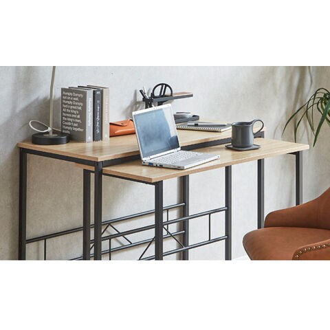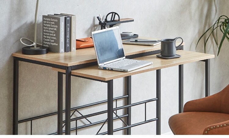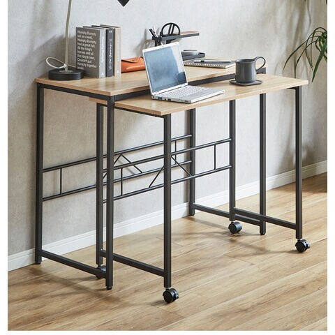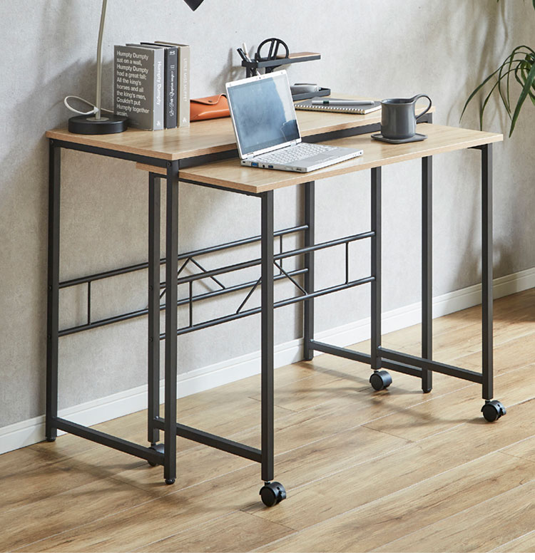 ツインデスク 幅90cm 2段使い パソコン2台使い デュアルモニター ブラックアイアン 古木風 キャスター付き デスク おしゃれ 書斎 リビング ワンルーム【送料無料】のレビュー