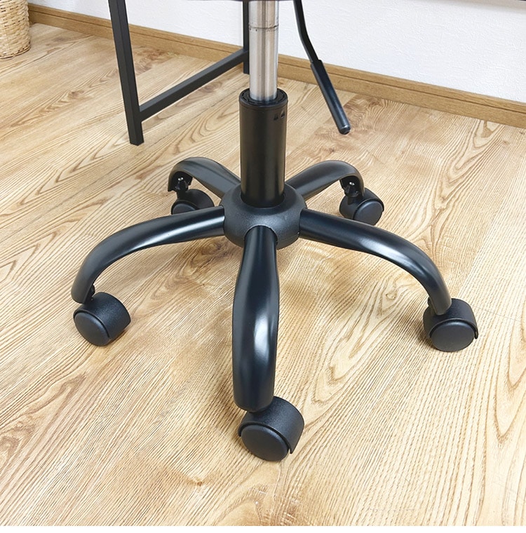 高さ調節可能な360度回転・キャスター付きのシンプルなデスクチェア。