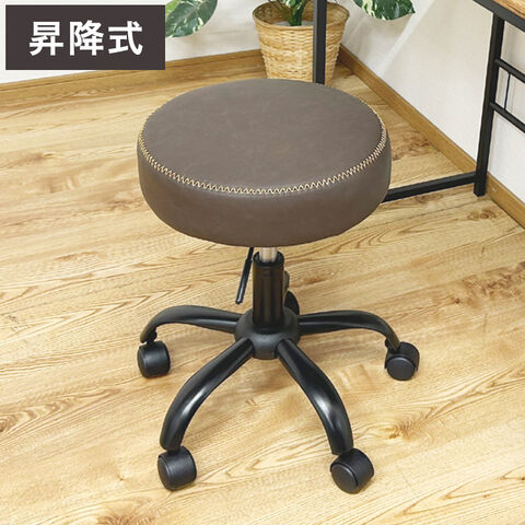 ガス圧昇降 回転式 デスクチェア スツール キャスター付き PUレザー 360度回転 椅子 イス チェア チェアー ステッチ おしゃれ【送料無料】