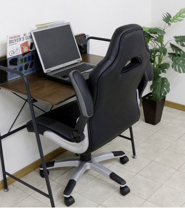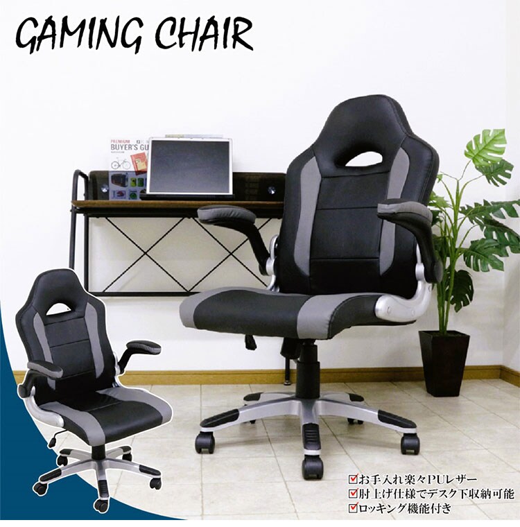 ゲーミングチェア キャスター付き 肘掛け ロッキング機能 デスク下収納 デスクチェア PUレザー ワークチェア パソコン 書斎 リモート【送料無料】