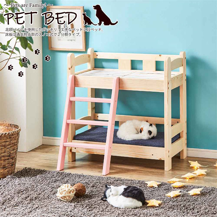 建築資材などに使われる北欧パイン材を使用したカントリー調ペット2段ベッド