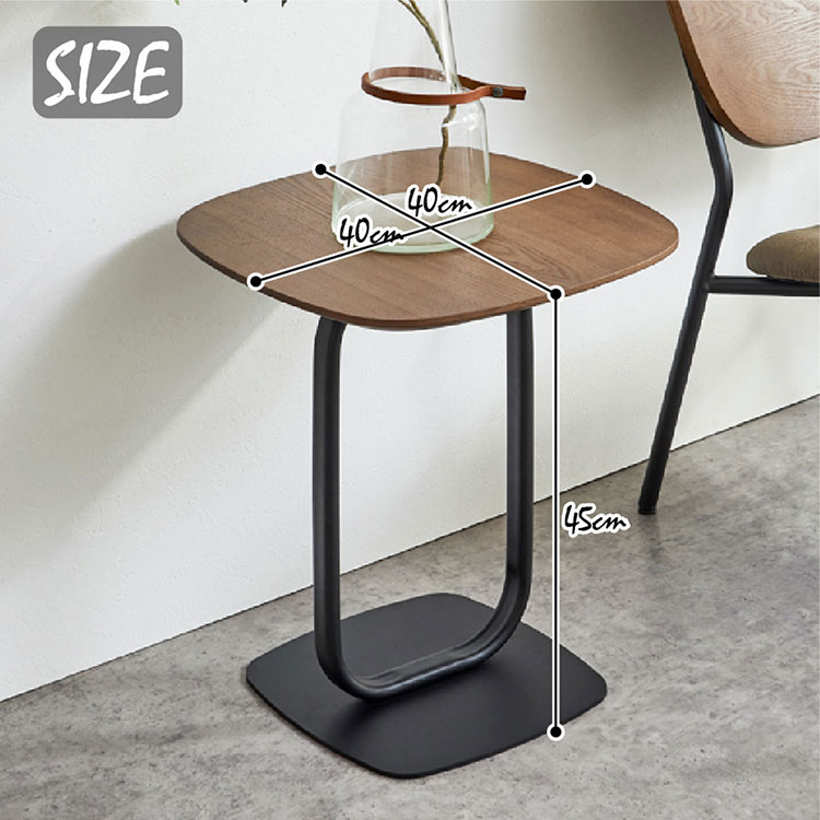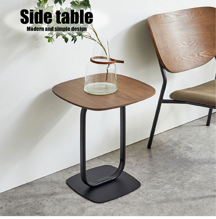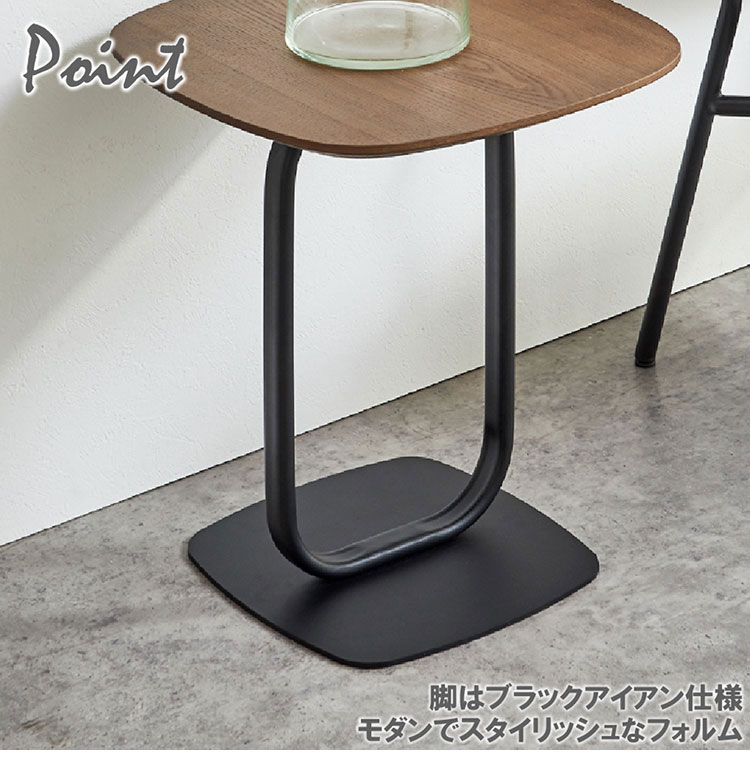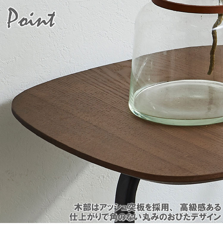 シンプルかつモダンなフォルムのサイドテーブル。木部は、木目のキレイなアッシュ突板を採用。脚はブラックアイアンを採用。モダンでシックな空間を演出します。