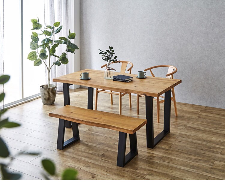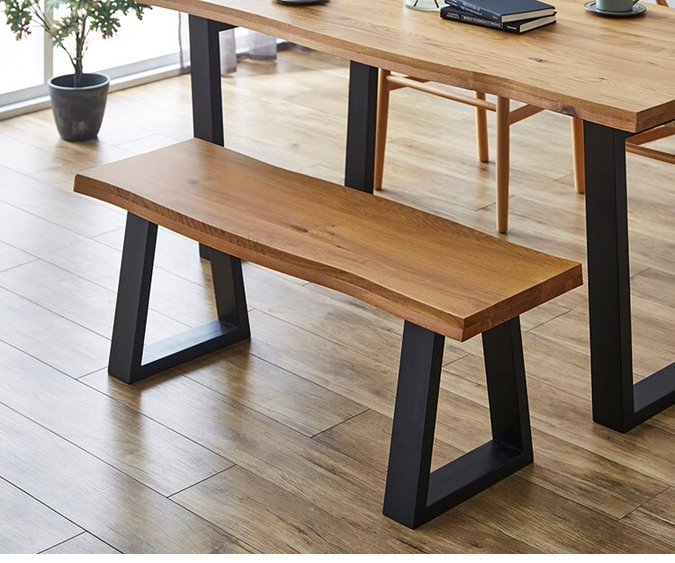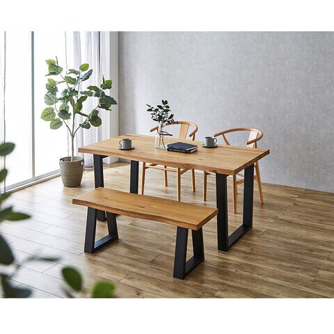 一枚板風ダイニングベンチ オーク無垢材 幅115 台形脚 オール無垢 椅子 イス チェア ベンチ アジャスター付き ダイニングベンチ 北欧 おしゃれ【送料無料】