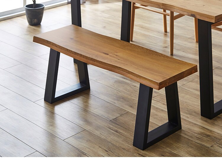 一枚板風ダイニングベンチ オーク無垢材 幅130 台形脚 オール無垢 椅子 イス チェア ベンチ アジャスター付き ダイニングベンチ 北欧 おしゃれ【送料無料】
