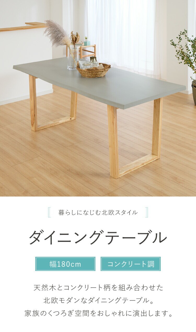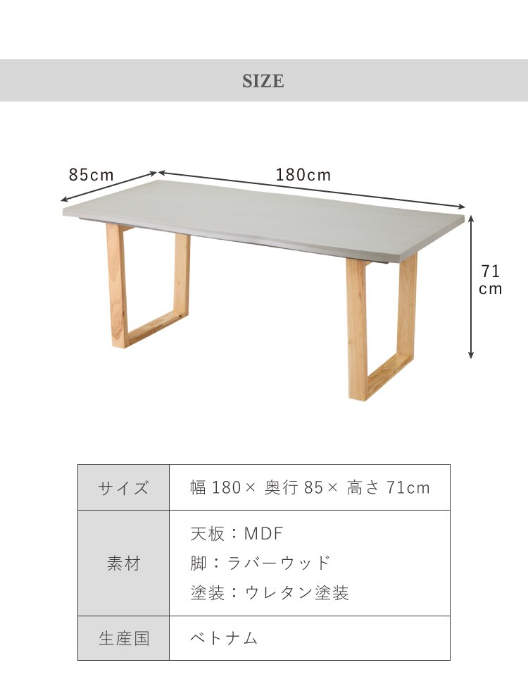コンクリート調 ダイニングテーブル 180cm グレー天板 台形脚 ウレタン塗装 食卓テーブル 机 ダイニング 北欧 モダン シンプル ナチュラル おしゃれ【送料無料】