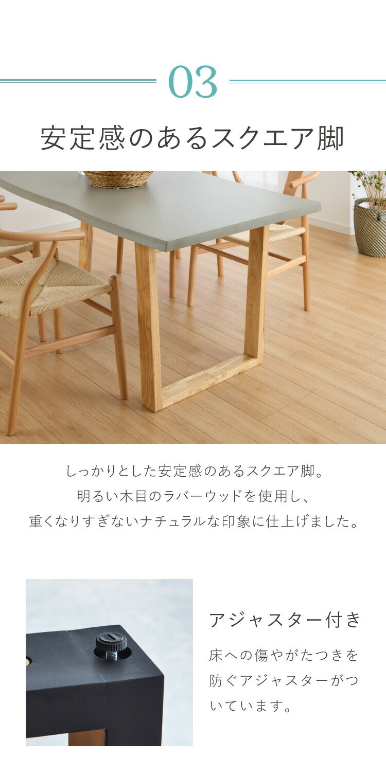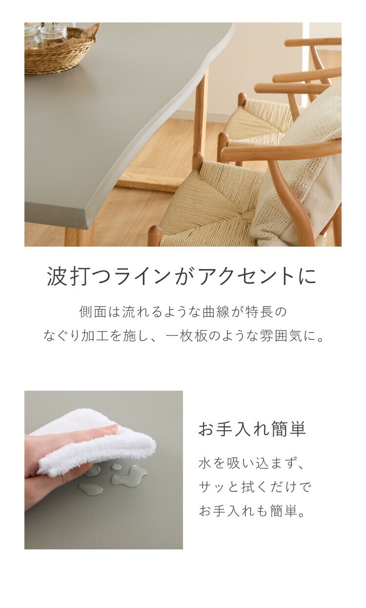 グレーの天板と木脚の組み合わせは、北欧やモダン、ナチュラルテイストなどさまざまなシーンで活躍します。
