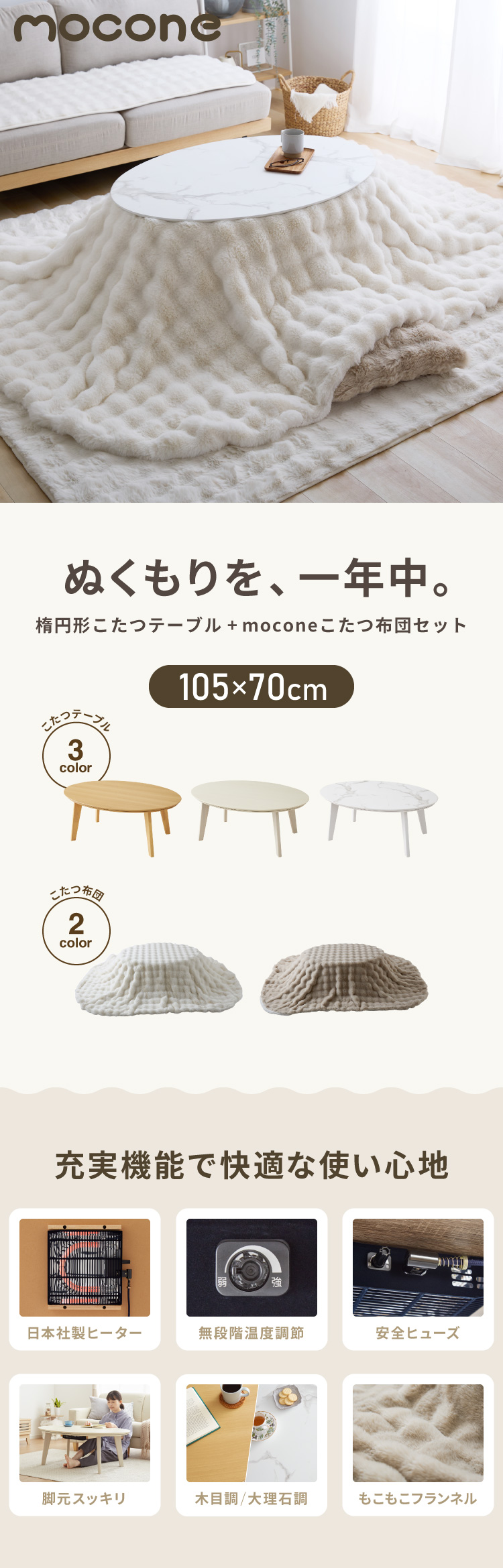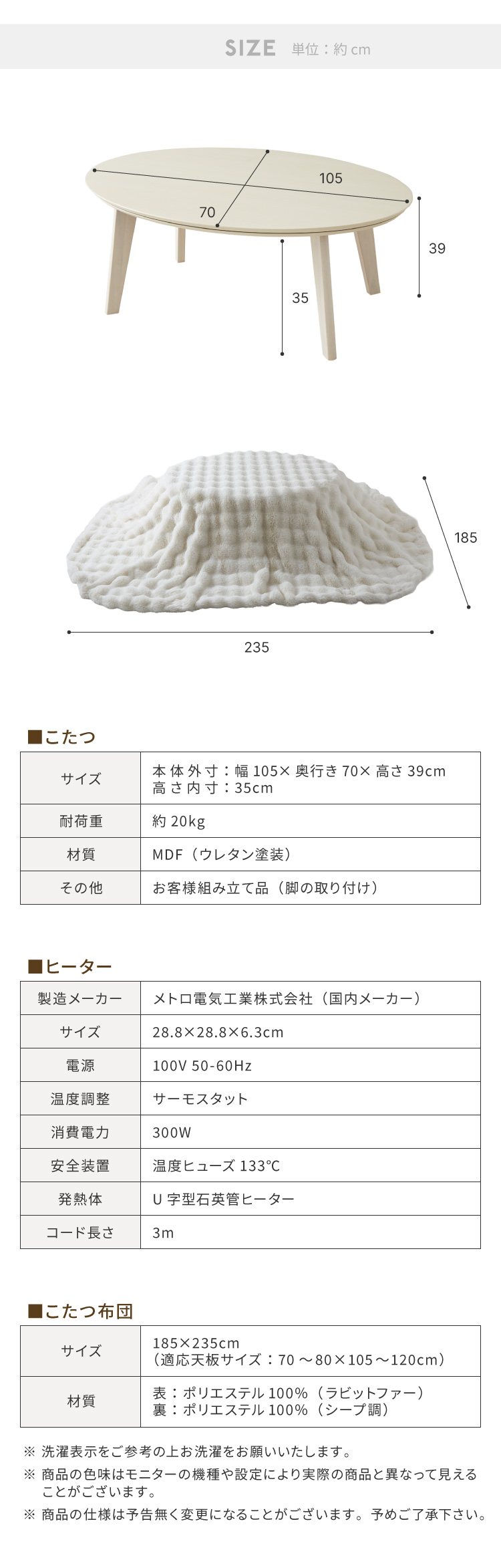 楕円形こたつ 105×70cm 石英管 こたつ布団セット テーブル単品 もこもこ フランネル こたつテーブル 楕円形 こたつ テーブル ヴィンテージ こたつ 掛け布団 センターテーブル【送料無料】