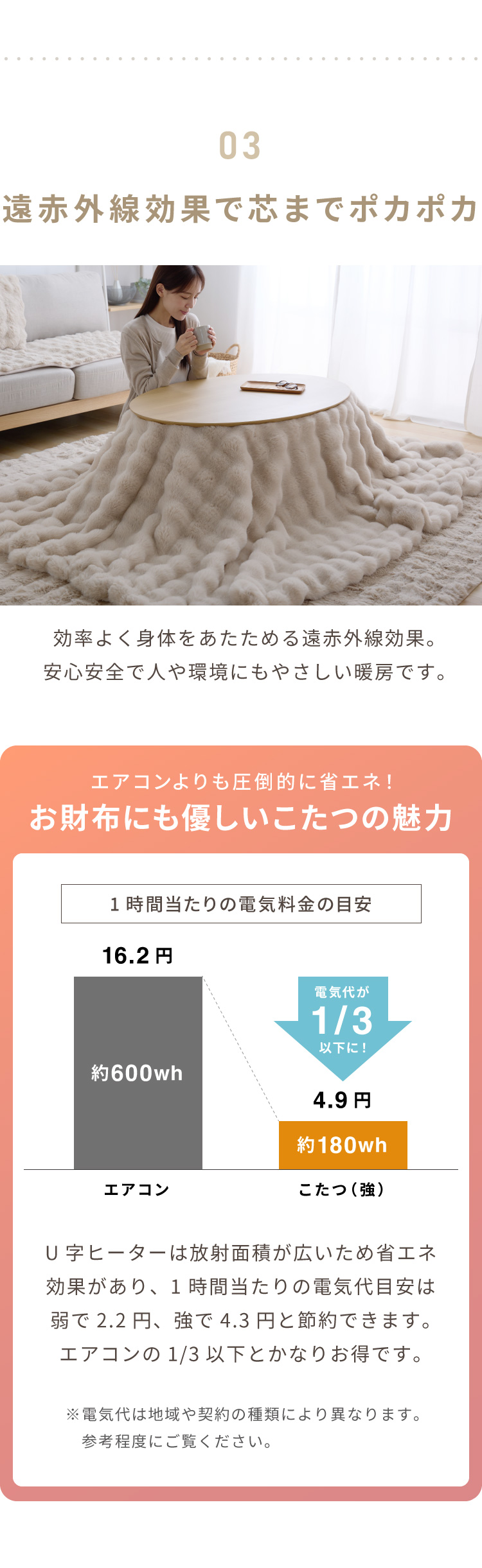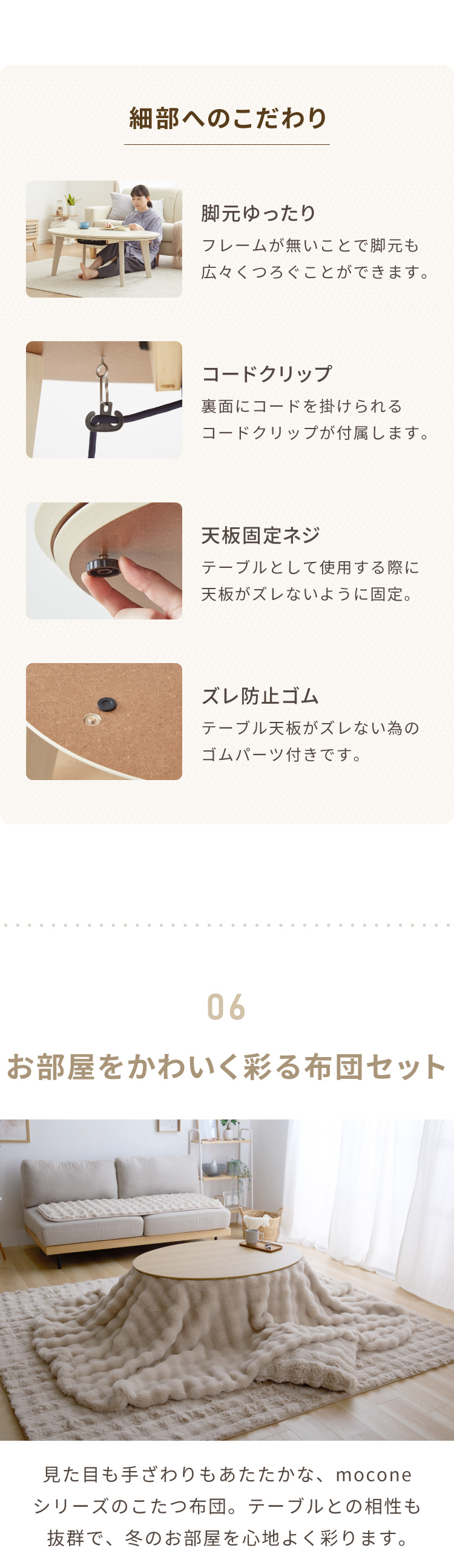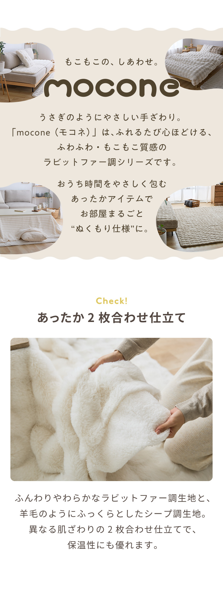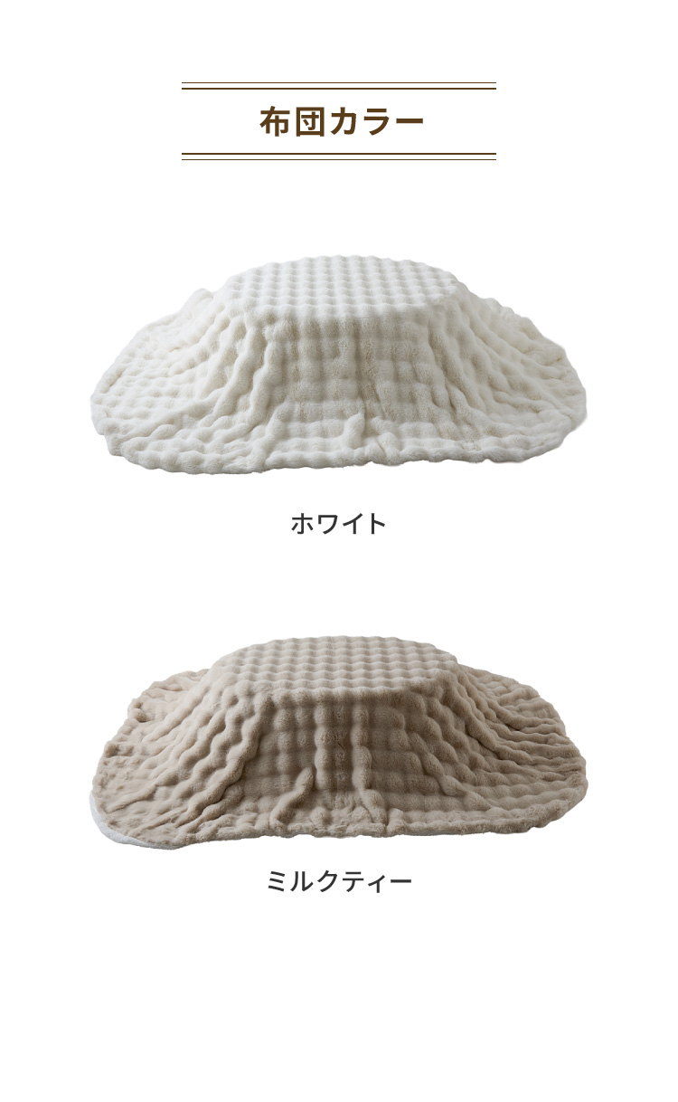 ・こたつ布団はラビットファーの長毛を使用。肌触りが良くずっと触ってられます。