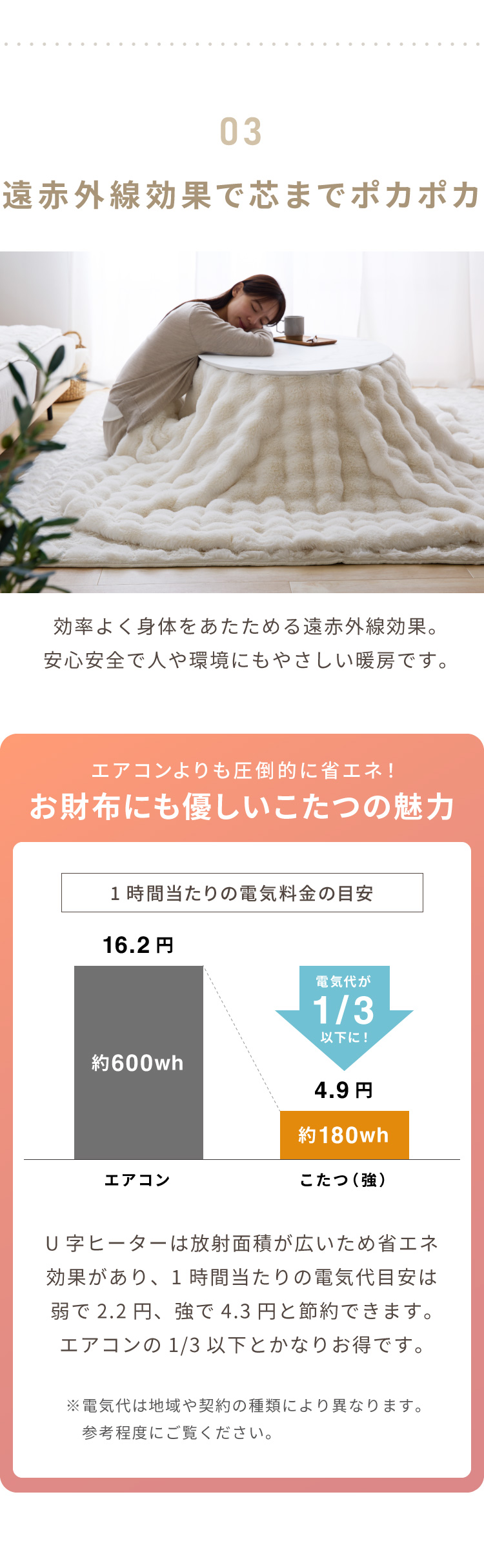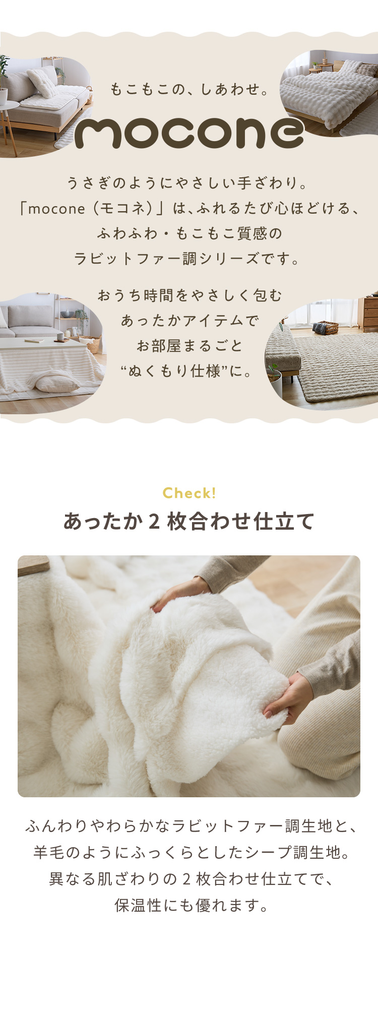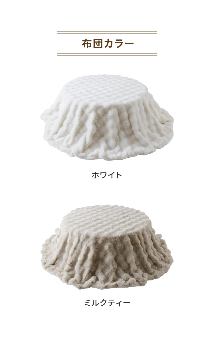 ・こたつ布団はラビットファーの長毛を使用。肌触りが良くずっと触ってられます。