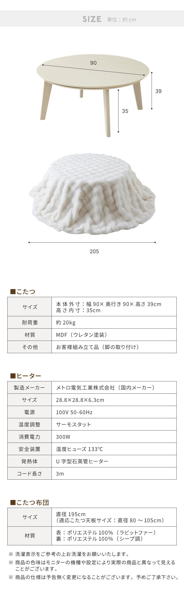 円形こたつ 90cm 石英管 こたつ布団セット テーブル単品 もこもこ フランネル こたつテーブル 円形 こたつ テーブル ヴィンテージ こたつ 掛け布団 センターテーブル【送料無料】