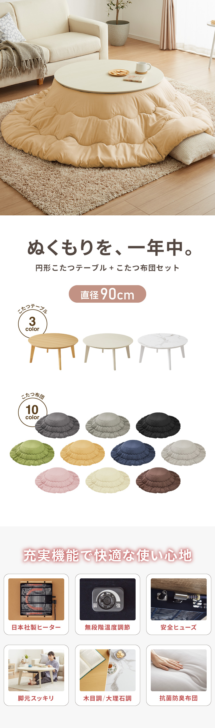 円形こたつ 90cm 石英管 こたつ布団セット テーブル単品 選べる10色 フランネル×シープボア こたつテーブル 円形 こたつ テーブル ヴィンテージ こたつ 掛け布団 センターテーブル【送料無料】