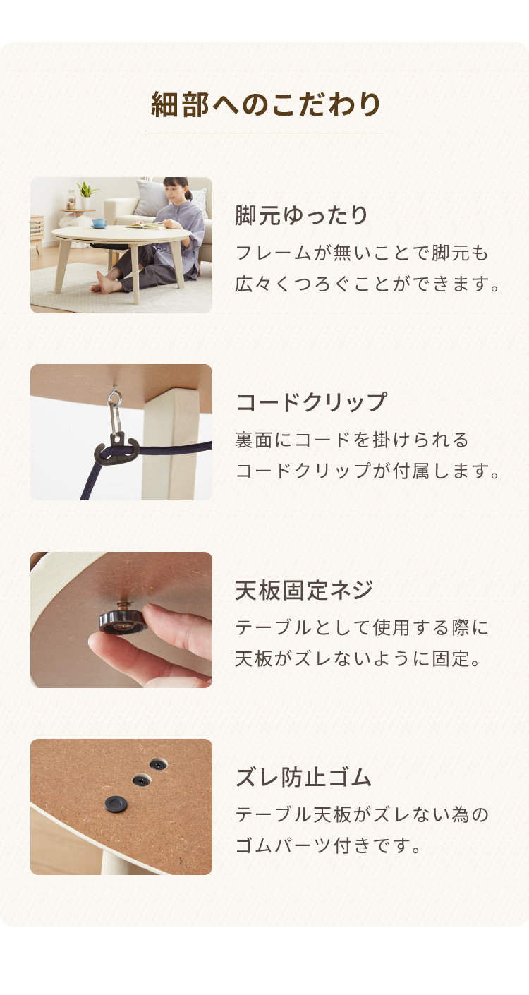 ・90cmの大きさは、1人用として広く使え、2~3人用でもリビングテーブルとして使える大きさ
