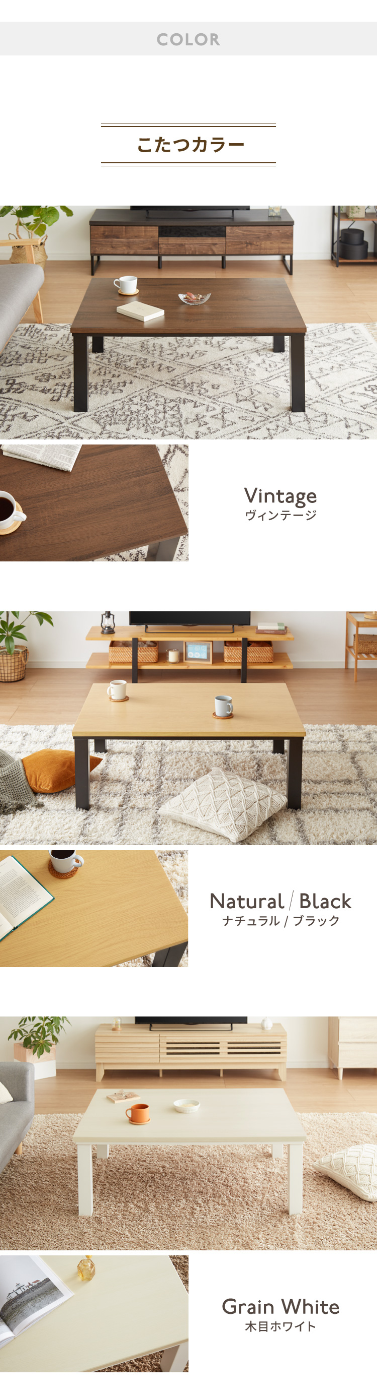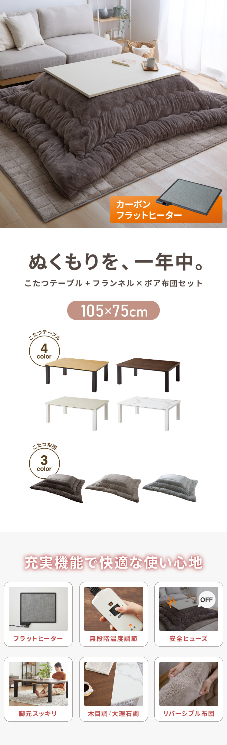 ヴィンテージこたつ ナチュラル ブラック 105×75cm フラットヒーター こたつ布団セット フランネル×シープボア こたつテーブル 長方形 こたつ テーブル ヴィンテージ こたつ 掛け布団【送料無料】