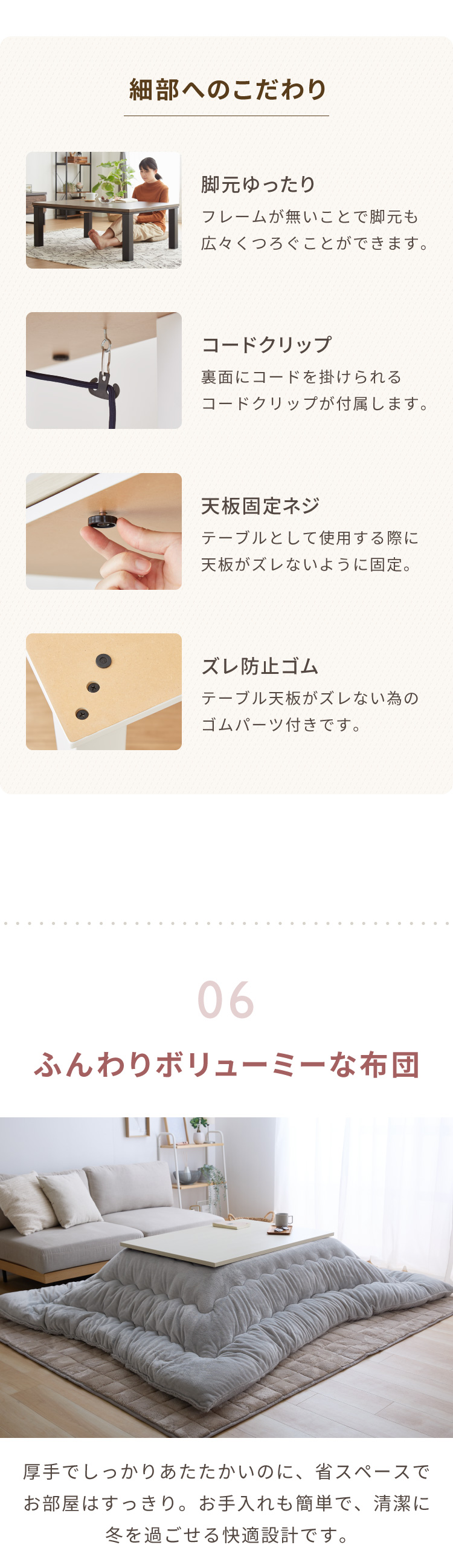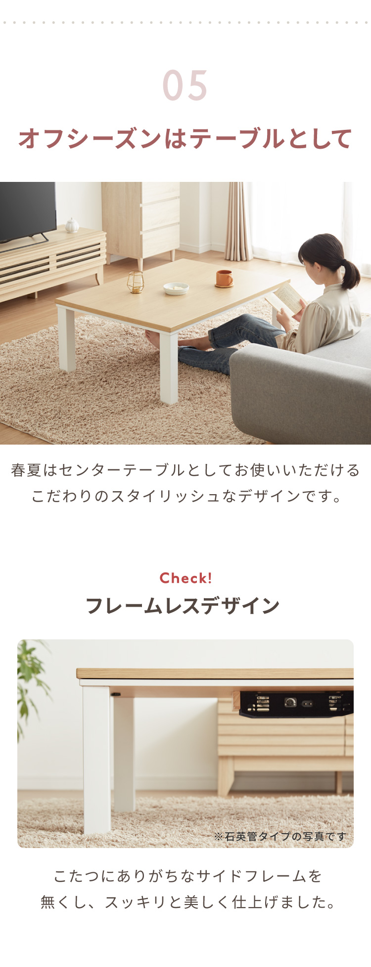 ・春から秋はセンターテーブルとして、冬はこたつとして使用できます。