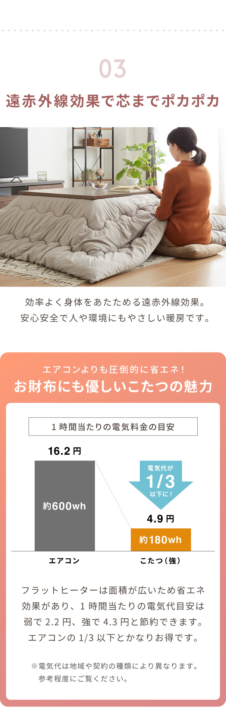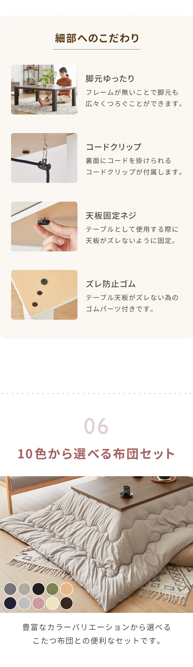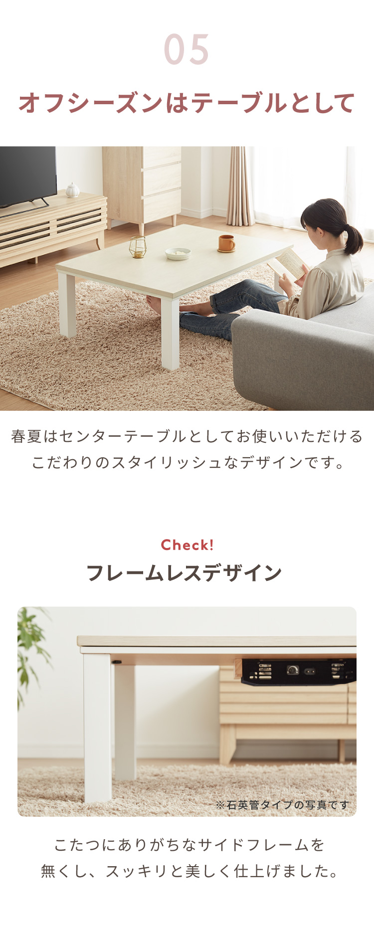 ・春から秋はセンターテーブルとして、冬はこたつとして使用できます。