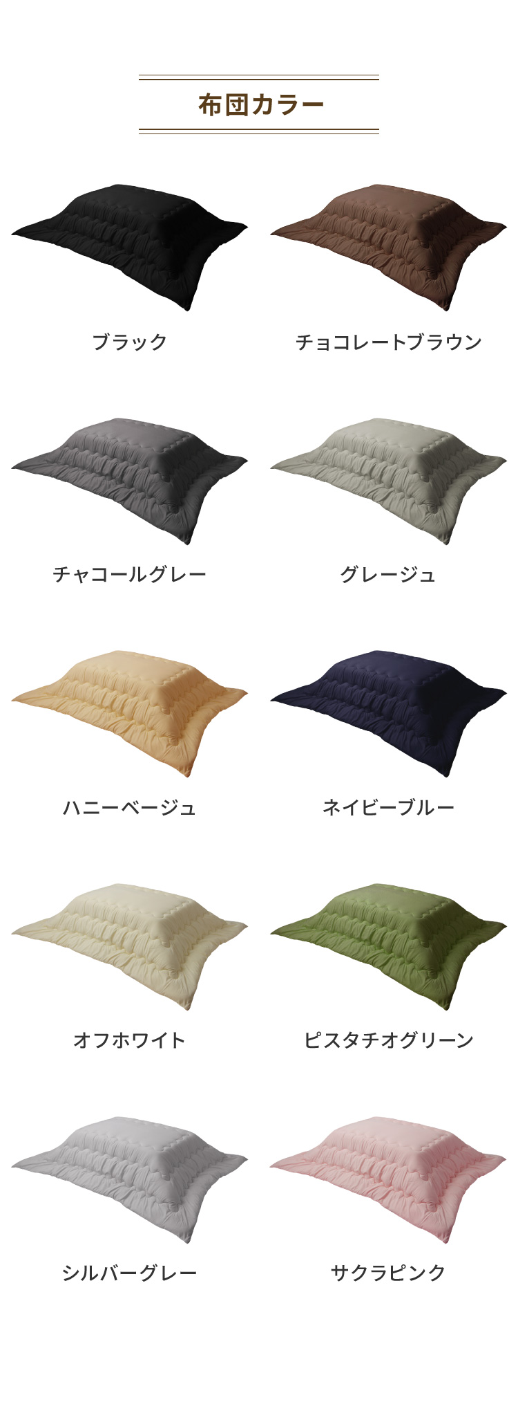 ・こたつ布団は中綿が1.9kgとしっかり綿が入っており、ふっくら仕上げ