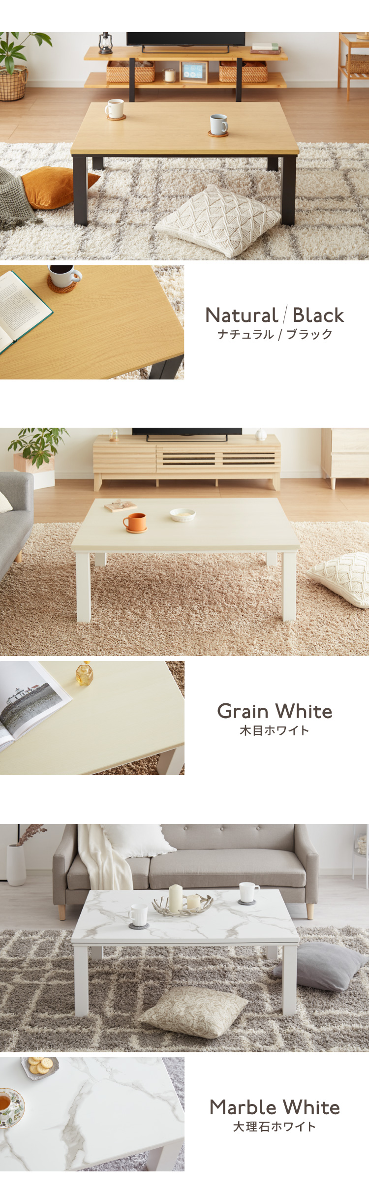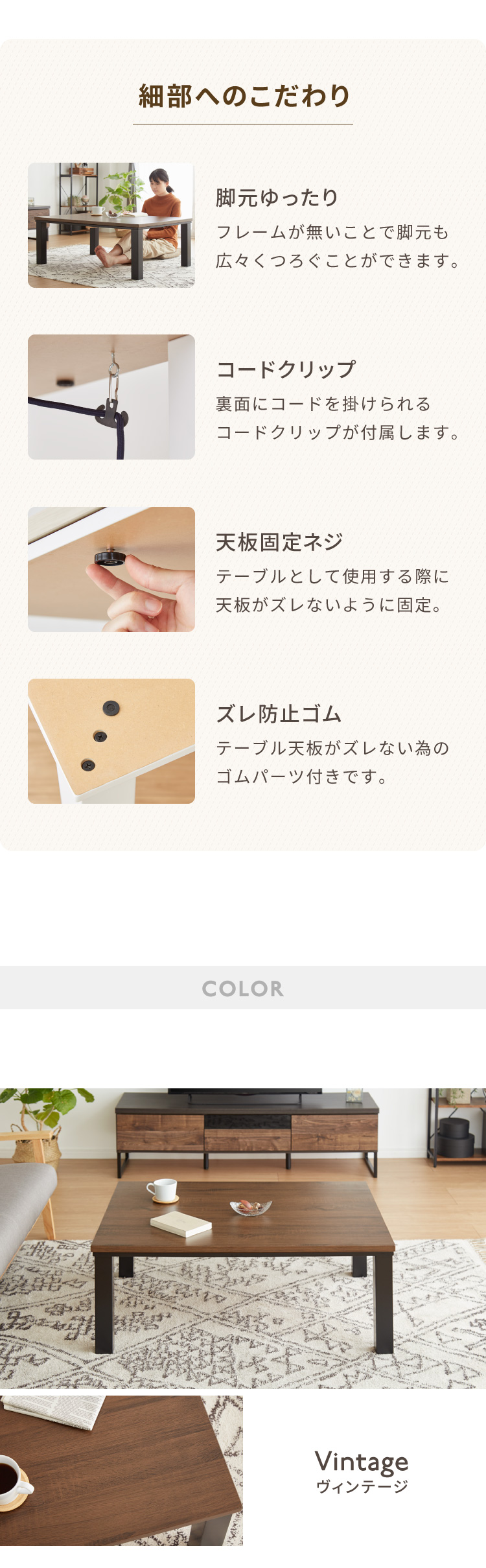 ・春から秋はセンターテーブルとして、冬はこたつとして使用できます。