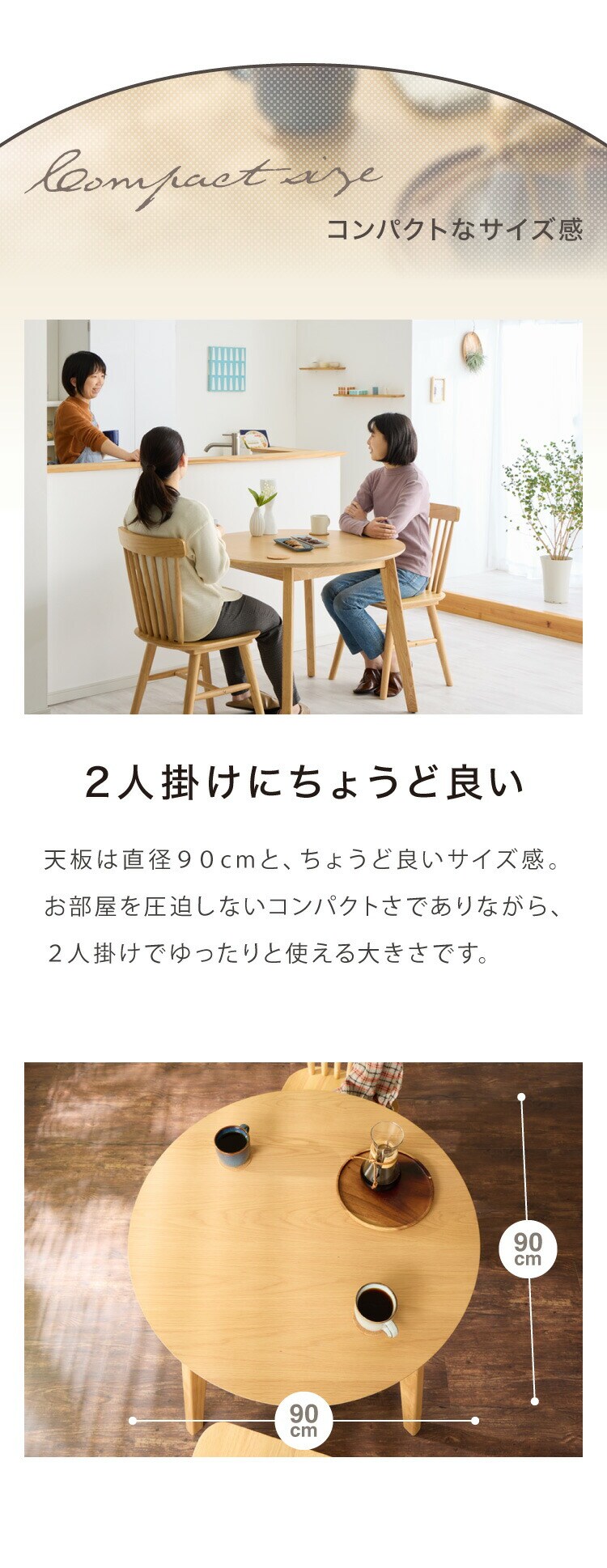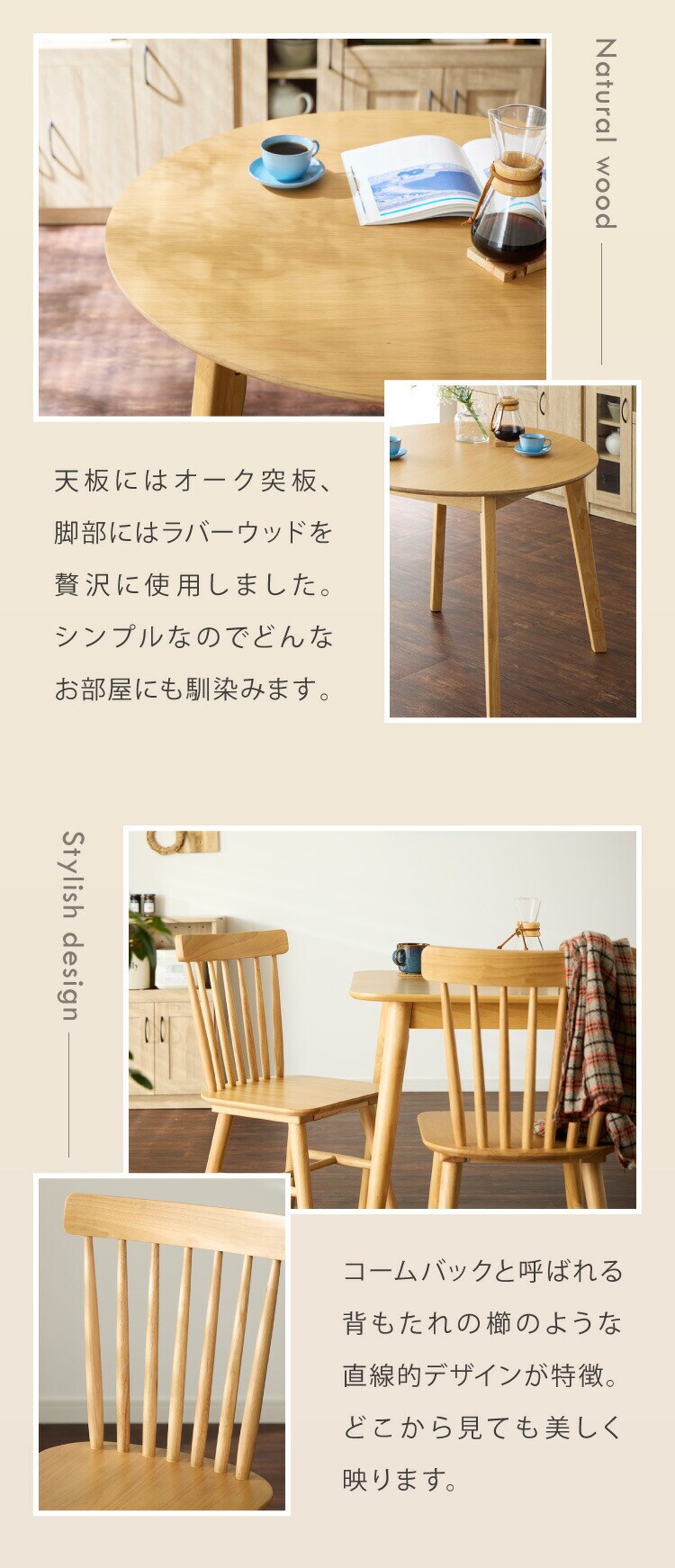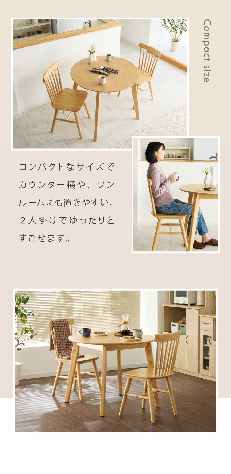カフェ風 ダイニング3点セット 2人掛け 円形 90cm ダイニングチェア ウィンザーチェア 天然木 オーク突板 ダイニング テーブル カフェテーブル ダイニングチェアー ナチュラル 木製 北欧【送料無料】