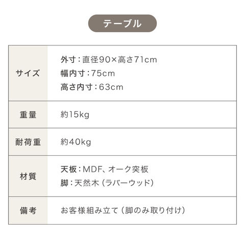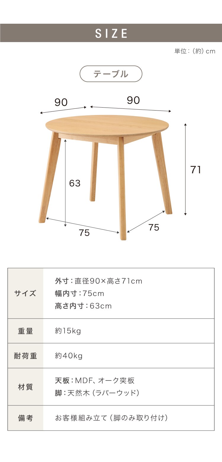 ・テーブルは円形のテーブルで、隅々まで使えます。