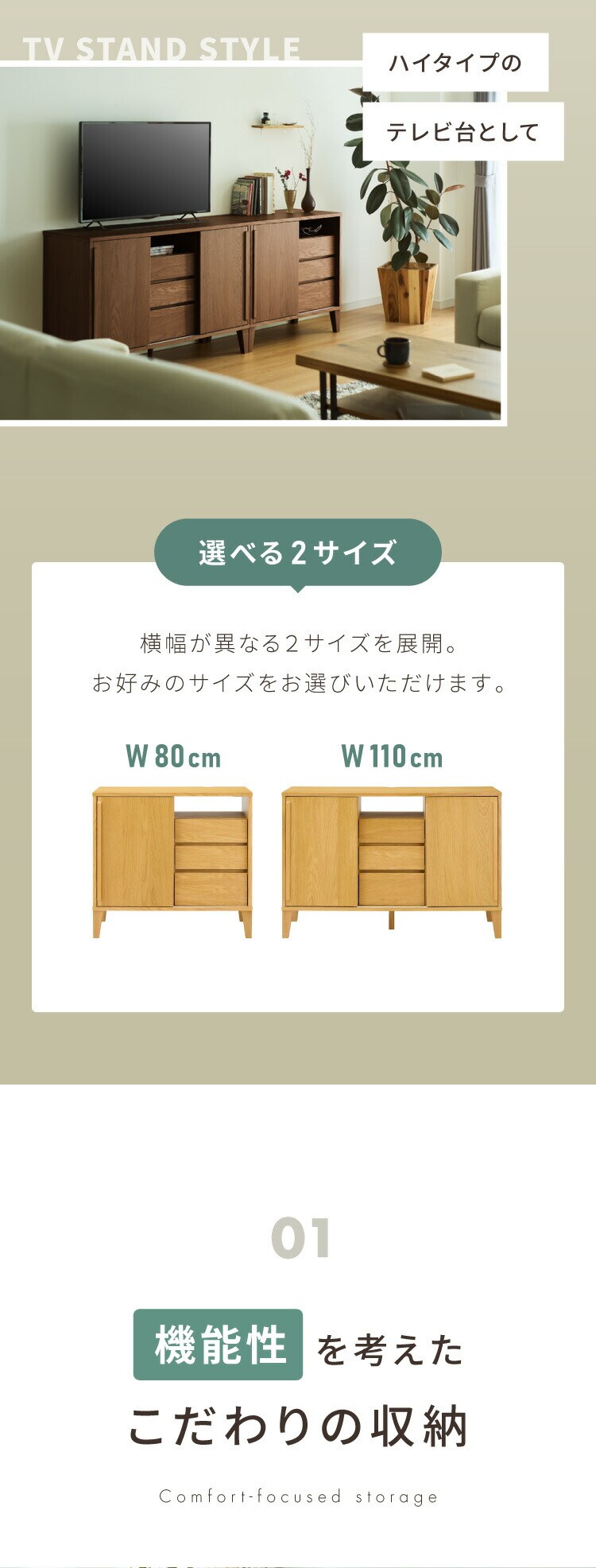 引戸式キャビネット 幅110cm 天然木 リビングボードリビング収納 テレビ台 ハイタイプ 引き戸 引き出し収納 A4サイズ収納 リビング収納 サイドボード チェスト タンス 収納 ルーター収納 テレビボード【送料無料】