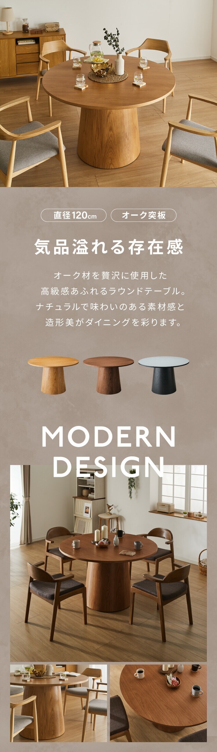 円形デザインダイニングテーブル 120