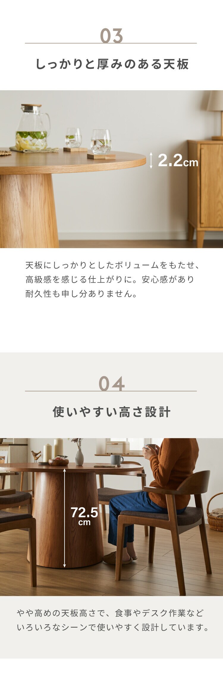 天板の厚さ:約2.2cm