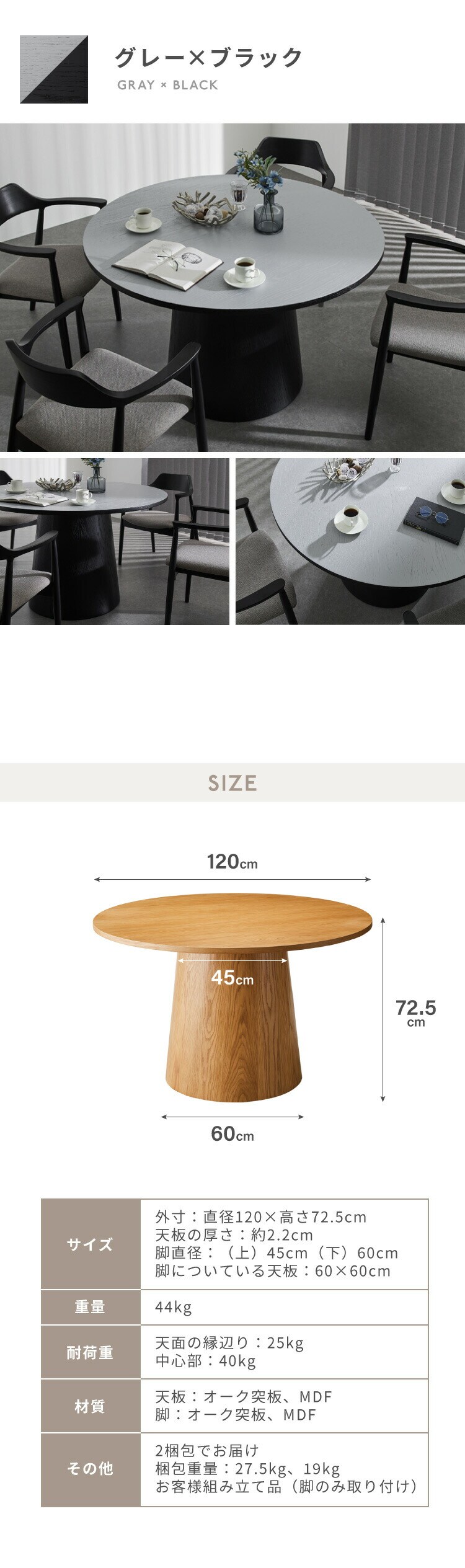 サイズ:直径120×高さ72.5cm