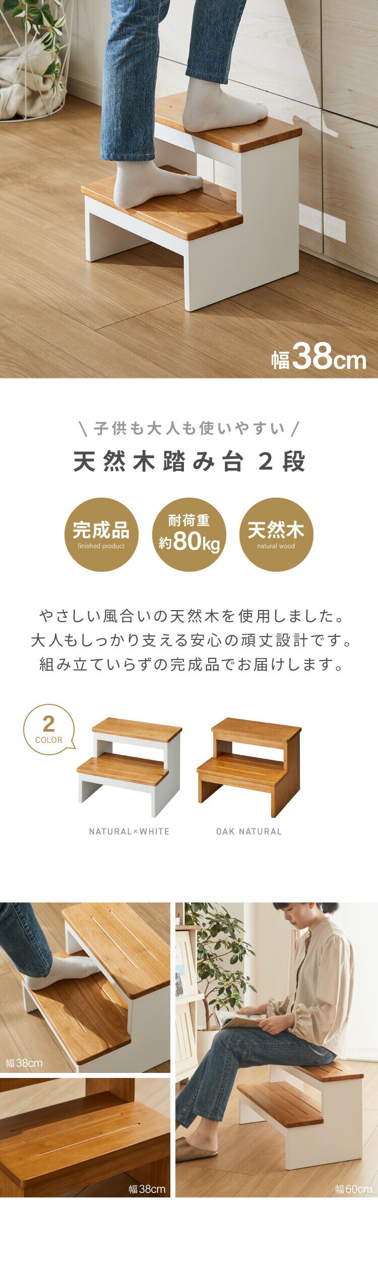 天然木踏み台 2段 W38