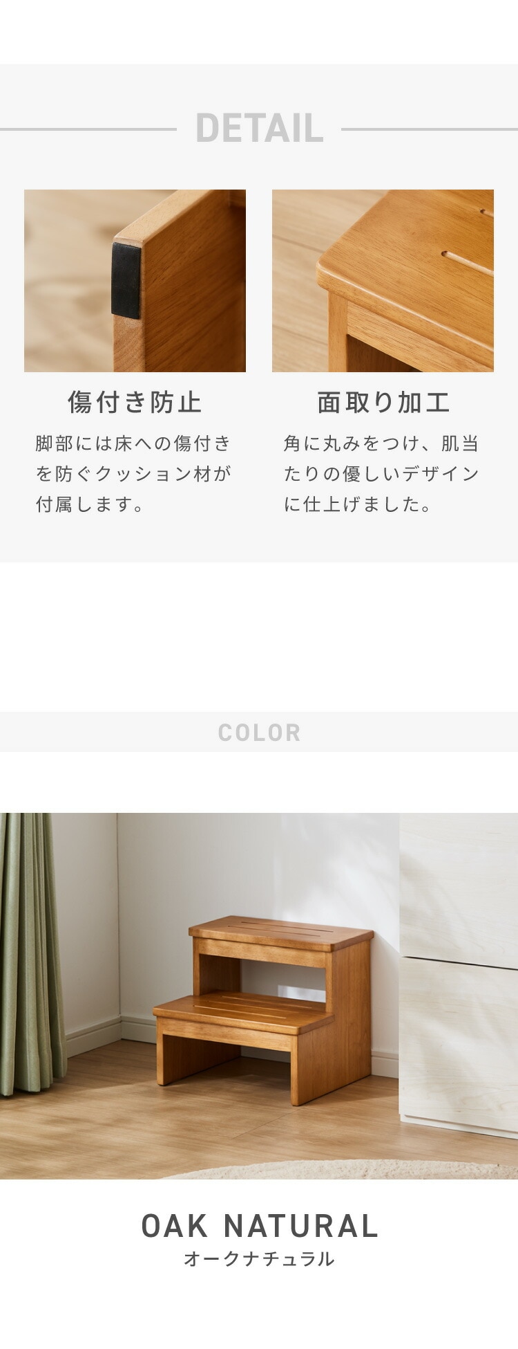 ・天然木を使用したやさしい風合いの踏み台です。