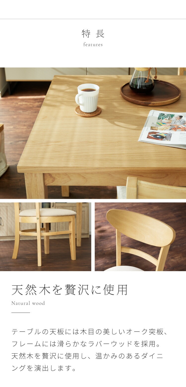 ・天板には天然木のオーク材を使用した自然な仕上がり