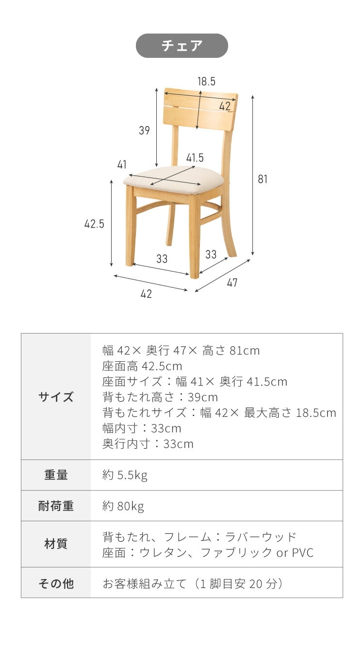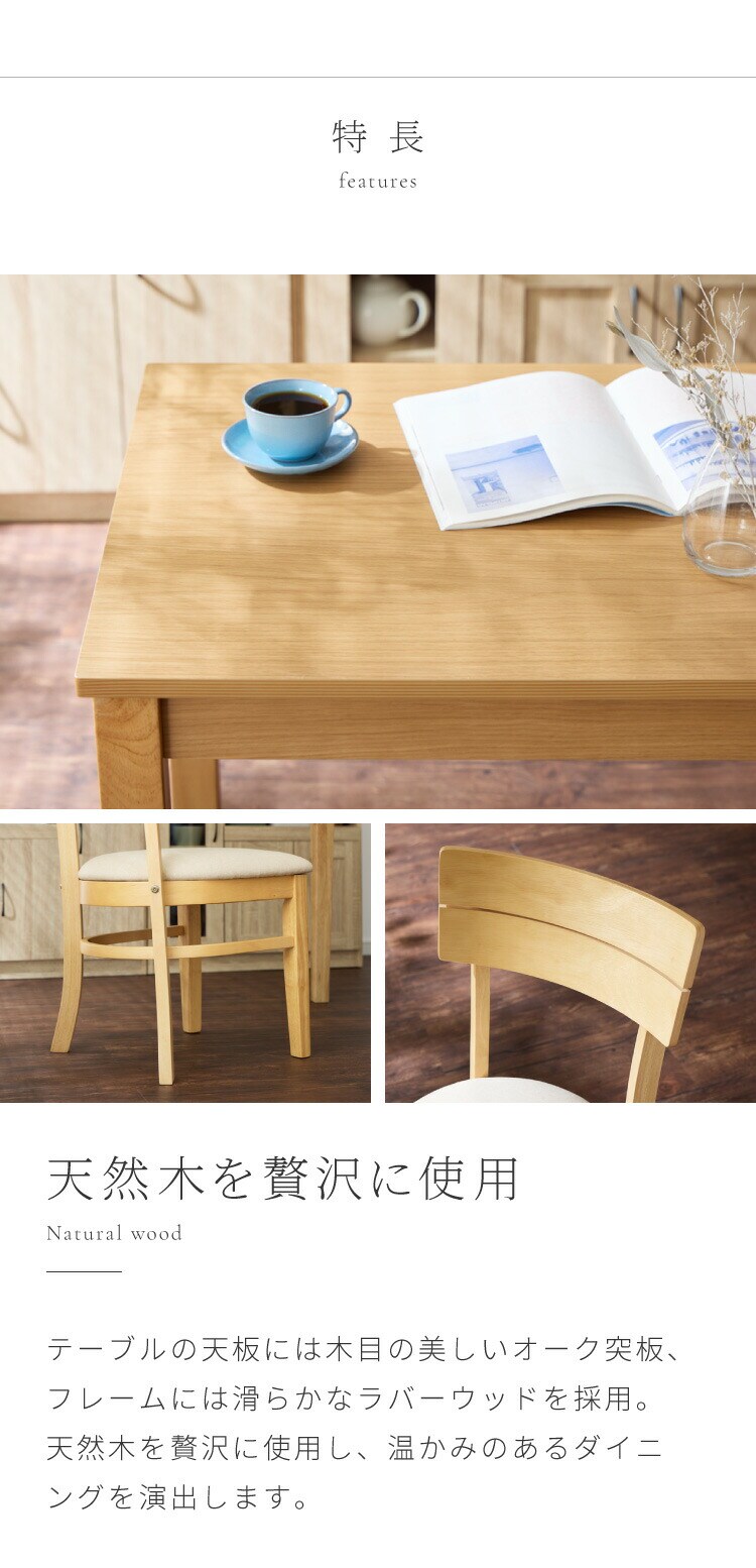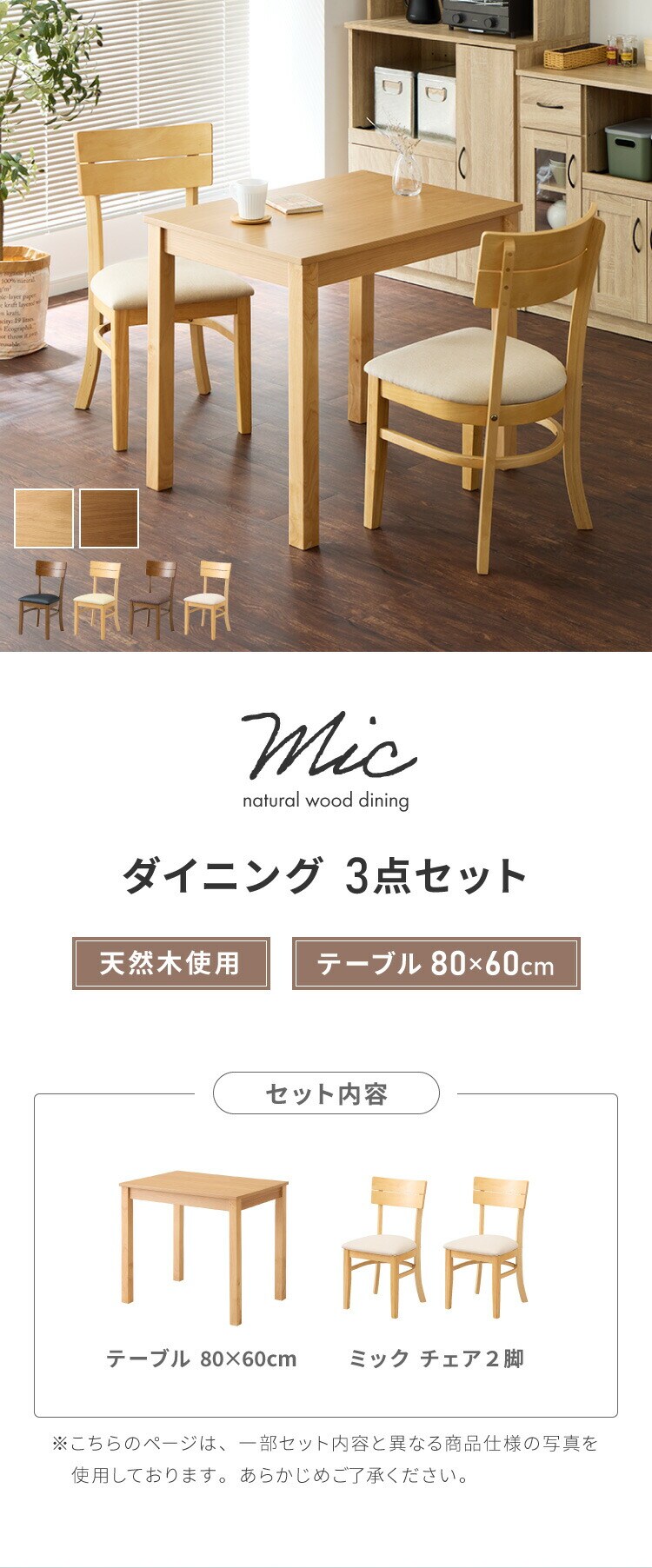 ・80×60cmとダイニングチェア「ミック」の3点セットです。