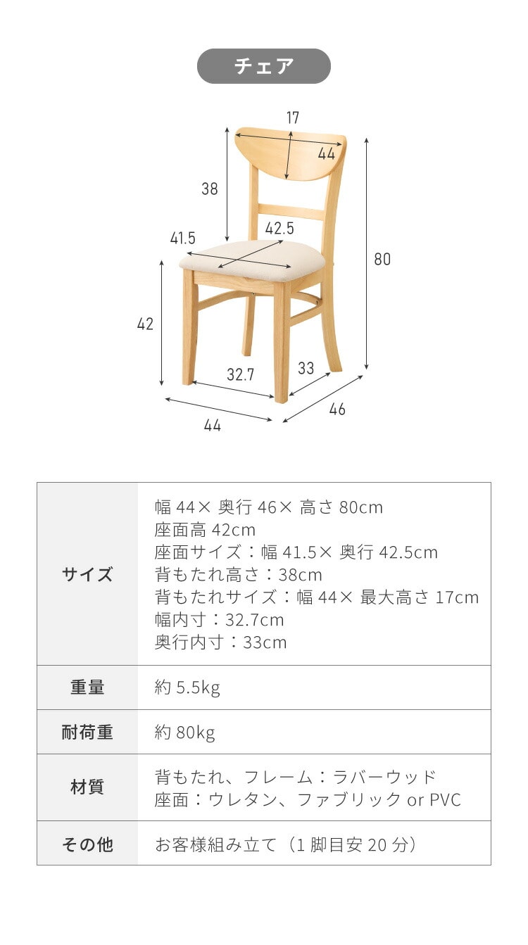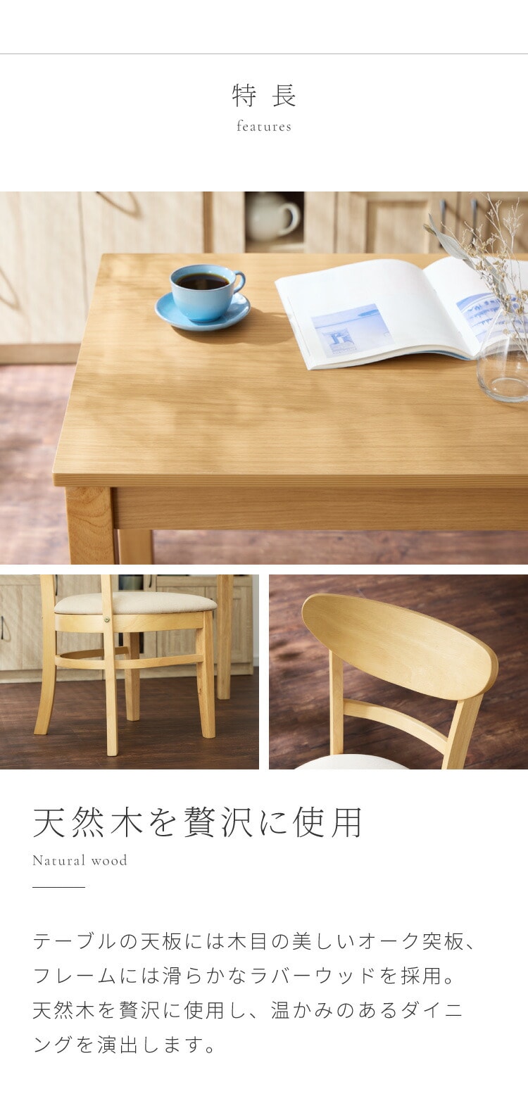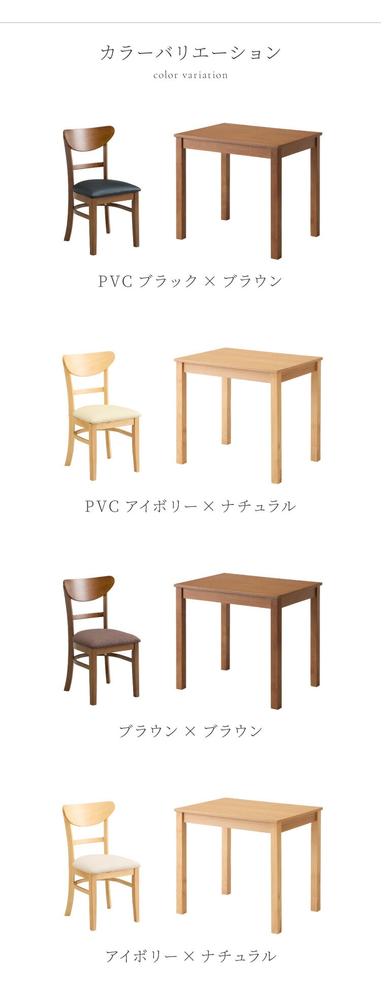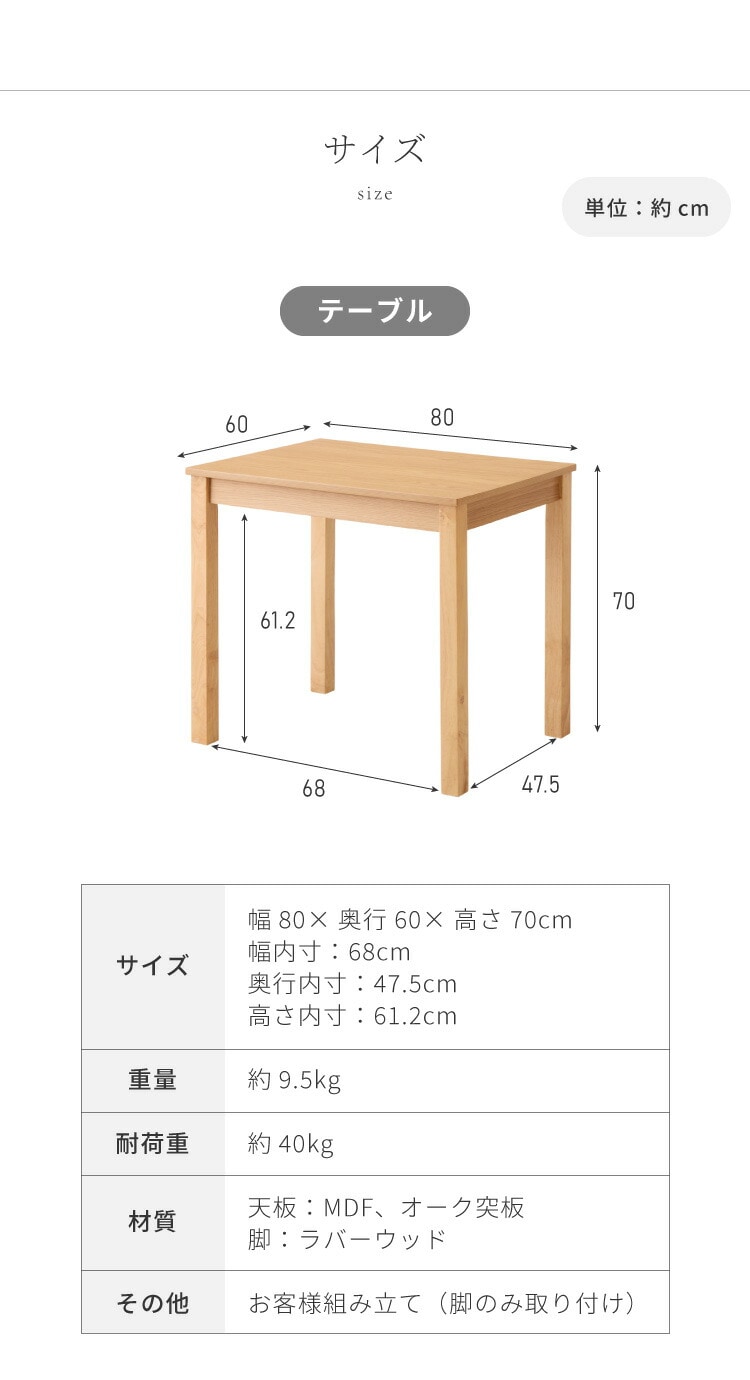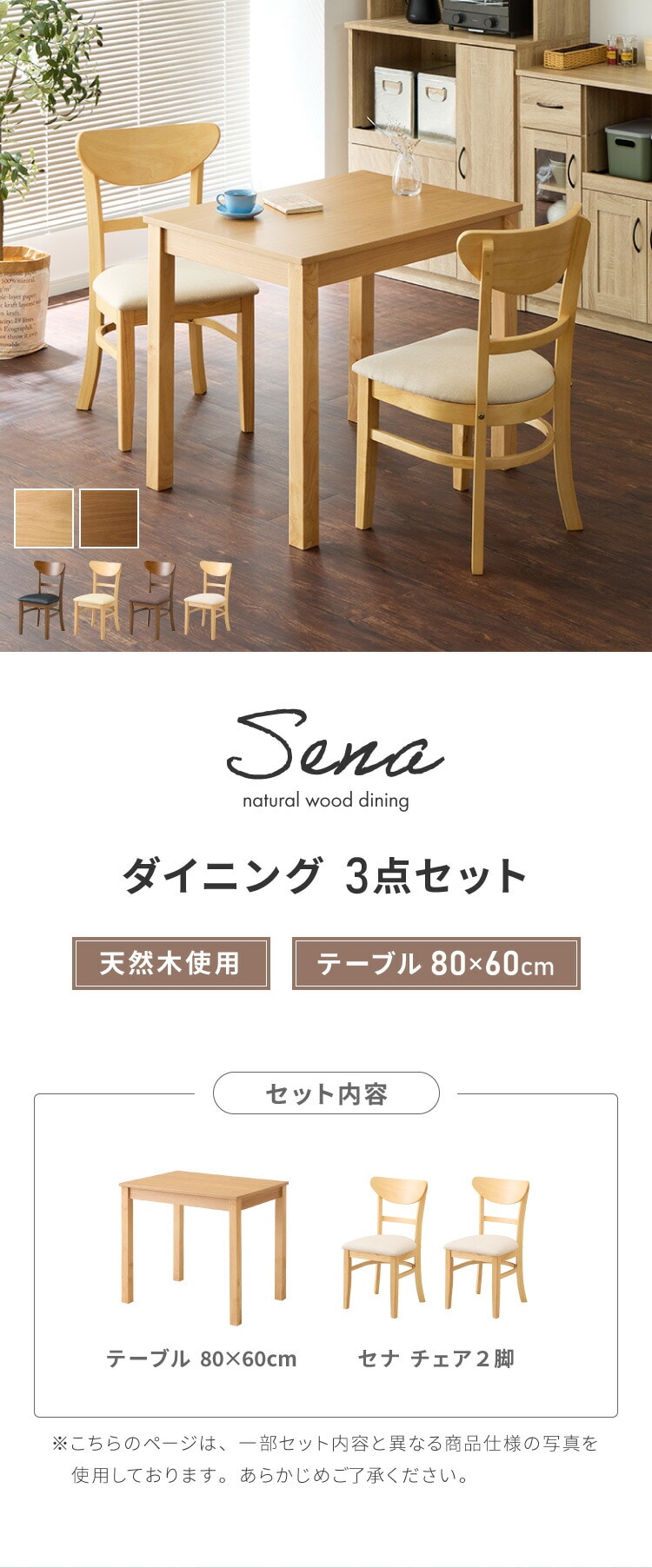 ・80×60cmとダイニングチェア「セナ」の3点セットです。