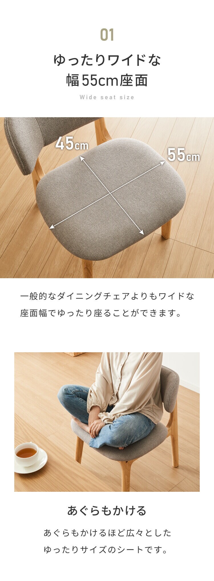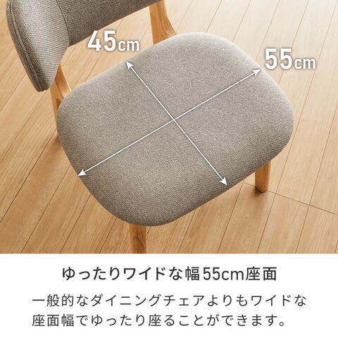 ・座面幅も55cmと、通常のダイニングチェアよりも大きめ
