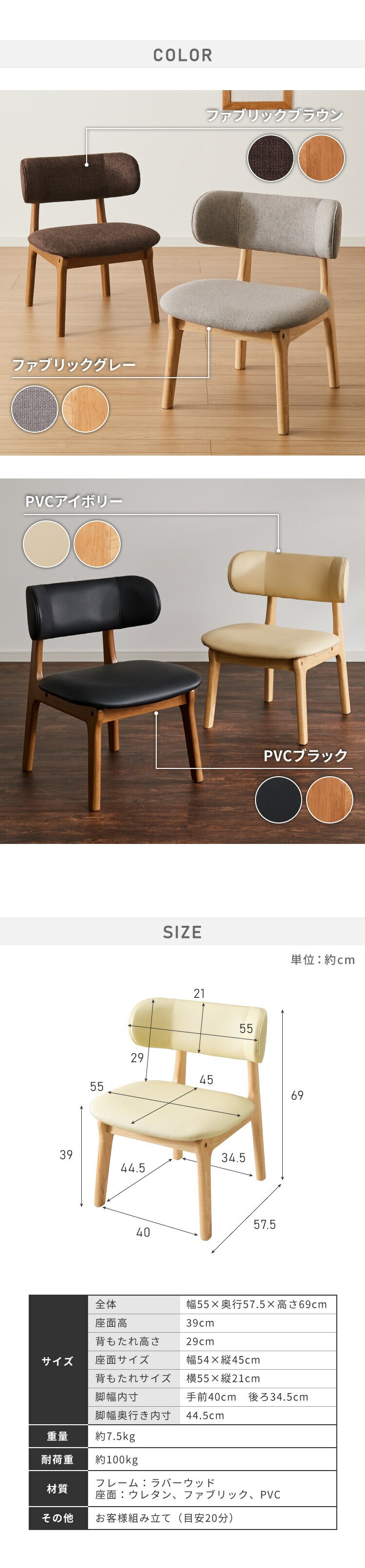 座面:ウレタン、ファブリック、PVC