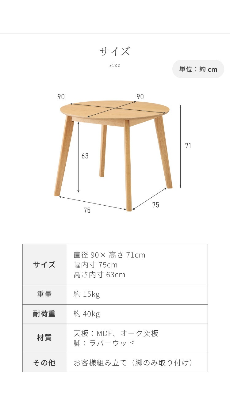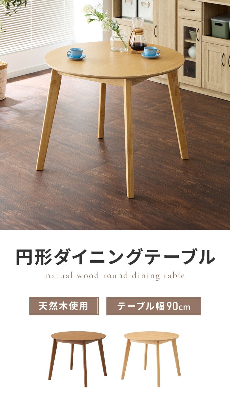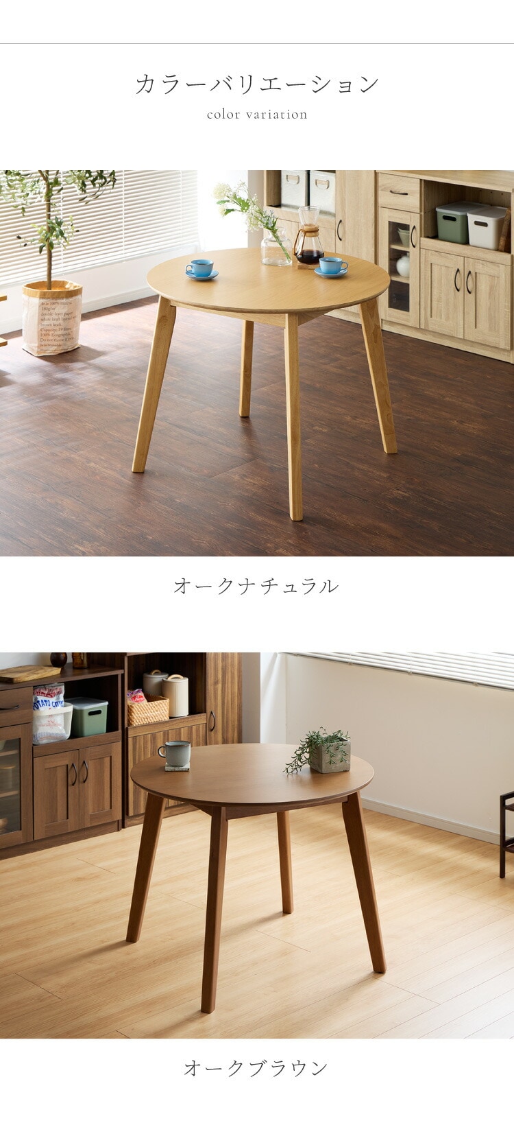 円形ダイニングテーブル 天然木 直径90cm 単品 2人掛け 4人掛け 木目調 ナチュラル 木製 オーク突板 ブラウン オーク リビング リビングテーブル カフェテーブル ラウンドテーブル【送料無料】