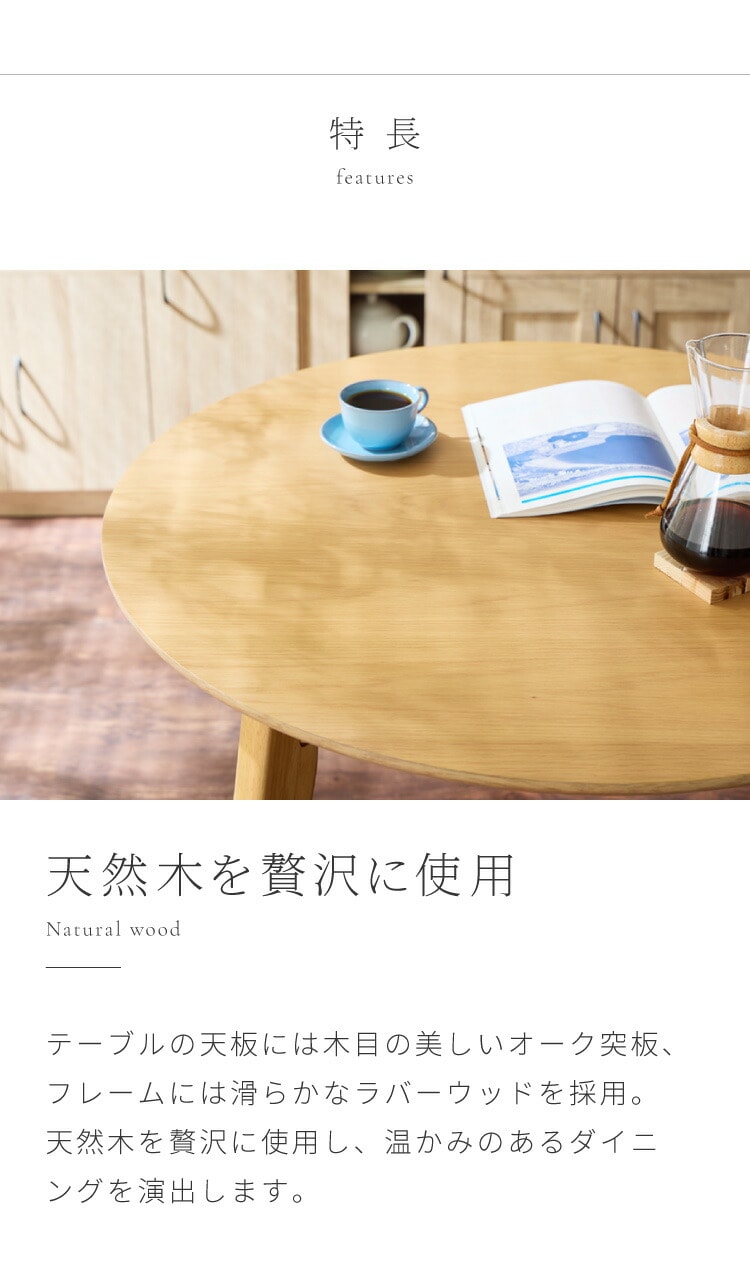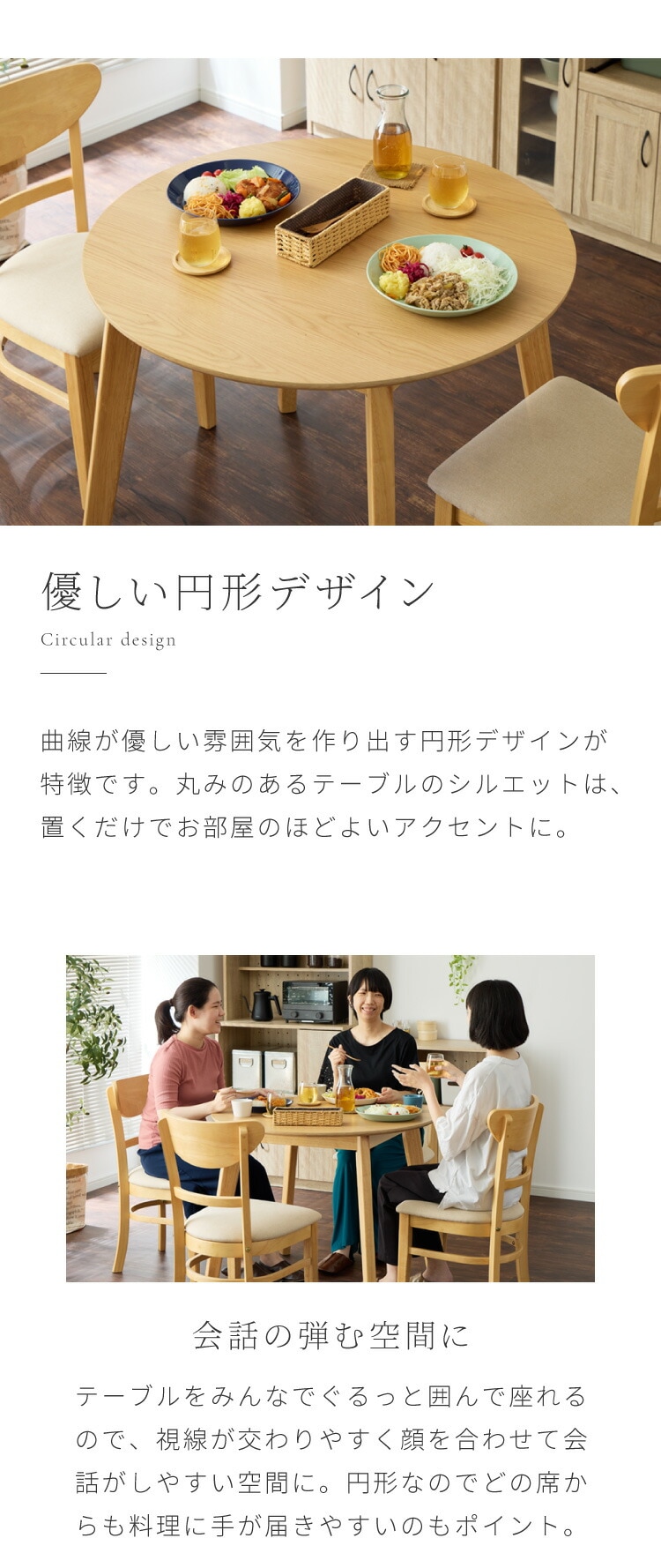 ・丸い形が自然と会話を弾ませるダイニングテーブルです。