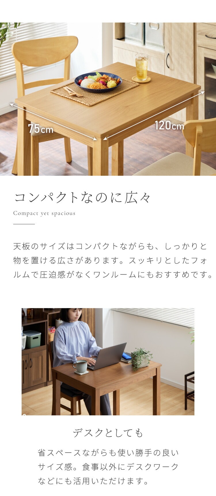 ・2人で使うのにちょうどいい幅80×奥行60cmのダイニングテーブル