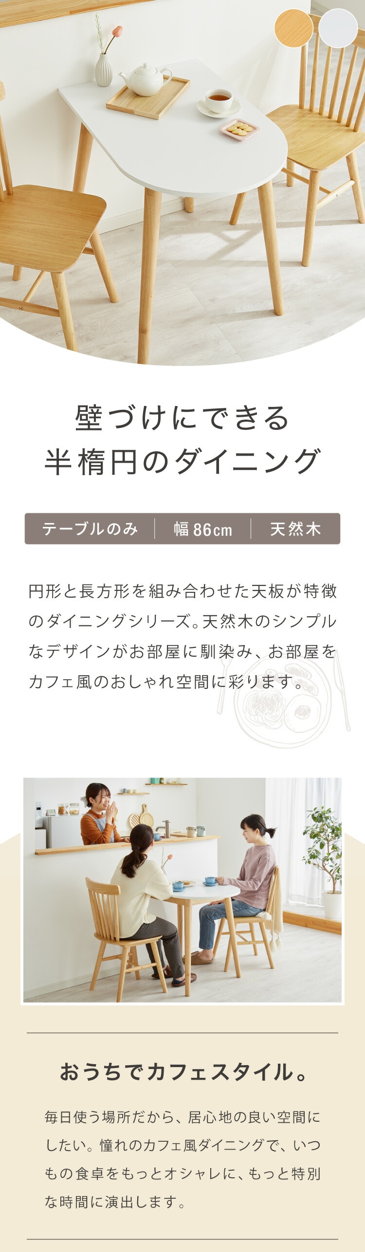 半楕円ダイニングテーブル 86