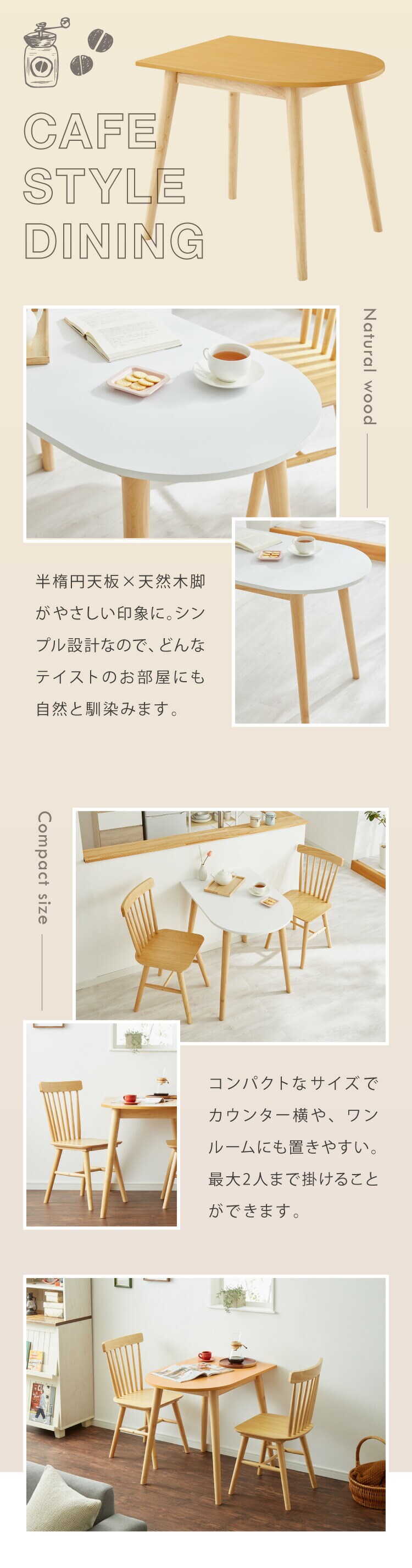 ・丸い脚が、まるでカフェにいるような気分にします。