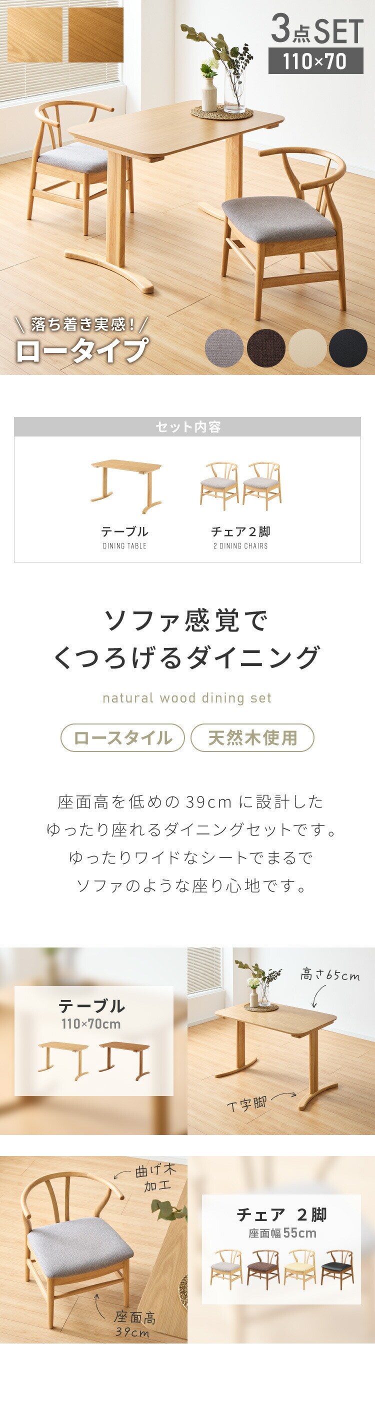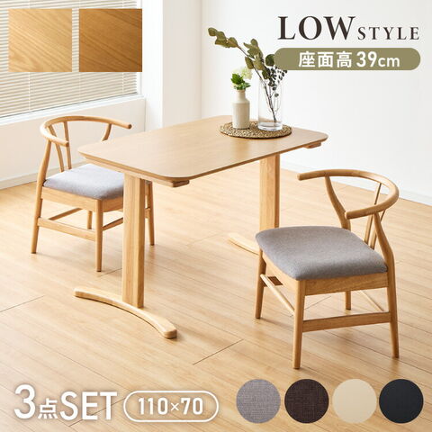 北欧デザインチェア ローガン 座面高39cm 3点セット 2人掛け ダイニングセット 3点 ダイニングチェア ロータイプ デザイナーズチェア アームチェア 木製チェア 食卓椅子 肘付き 完成品【送料無料】