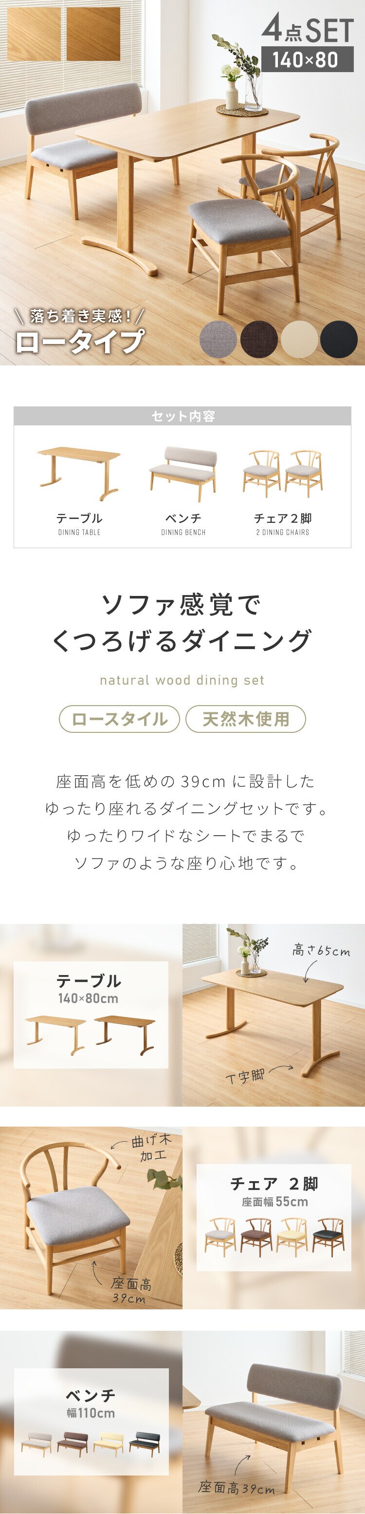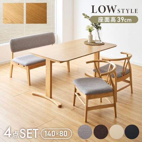 北欧デザインチェア ローガン 座面高39cm 4点セット 4人掛け ダイニングセット 4点 ダイニングチェア ロータイプ デザイナーズチェア ダイニングベンチ 木製チェア 食卓椅子 肘付き 椅子 完成品【送料無料】